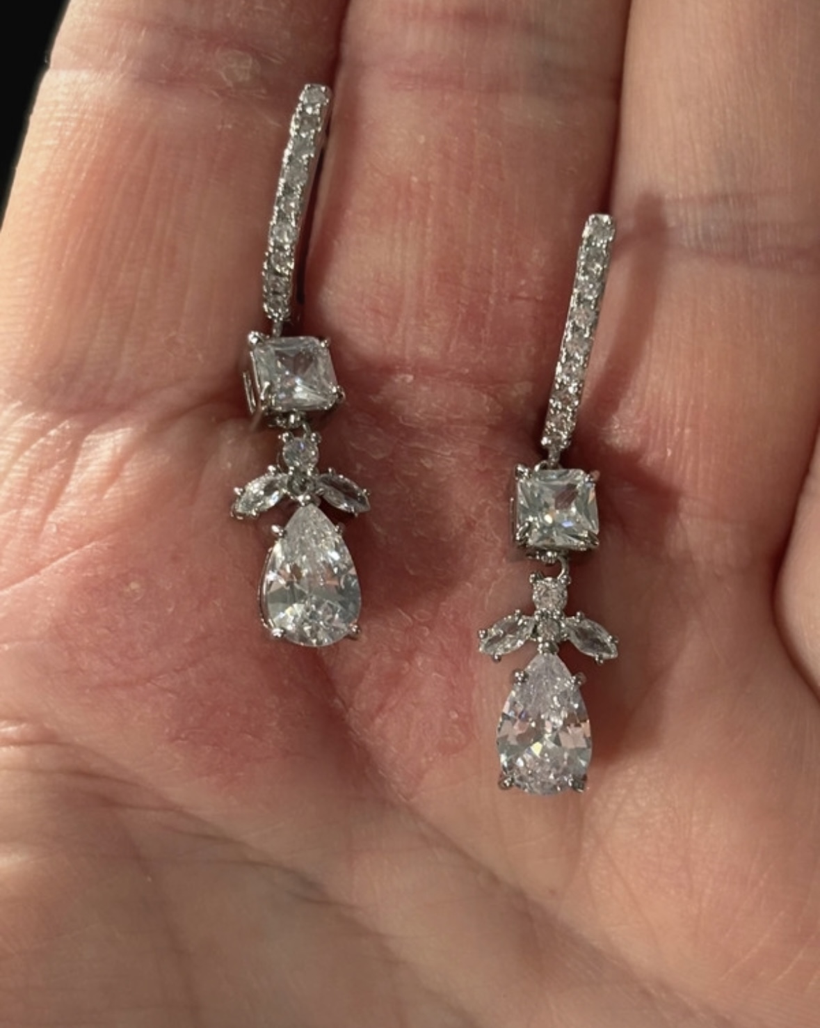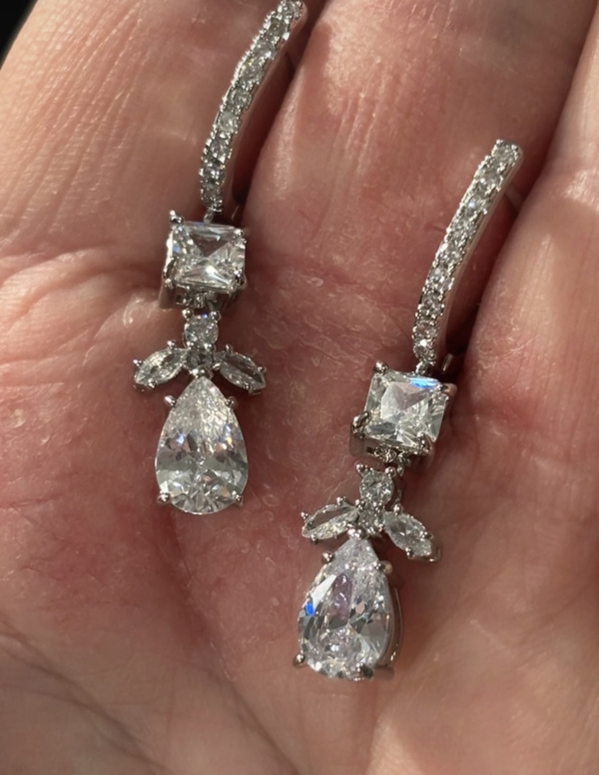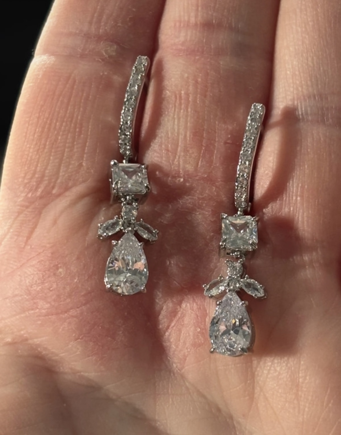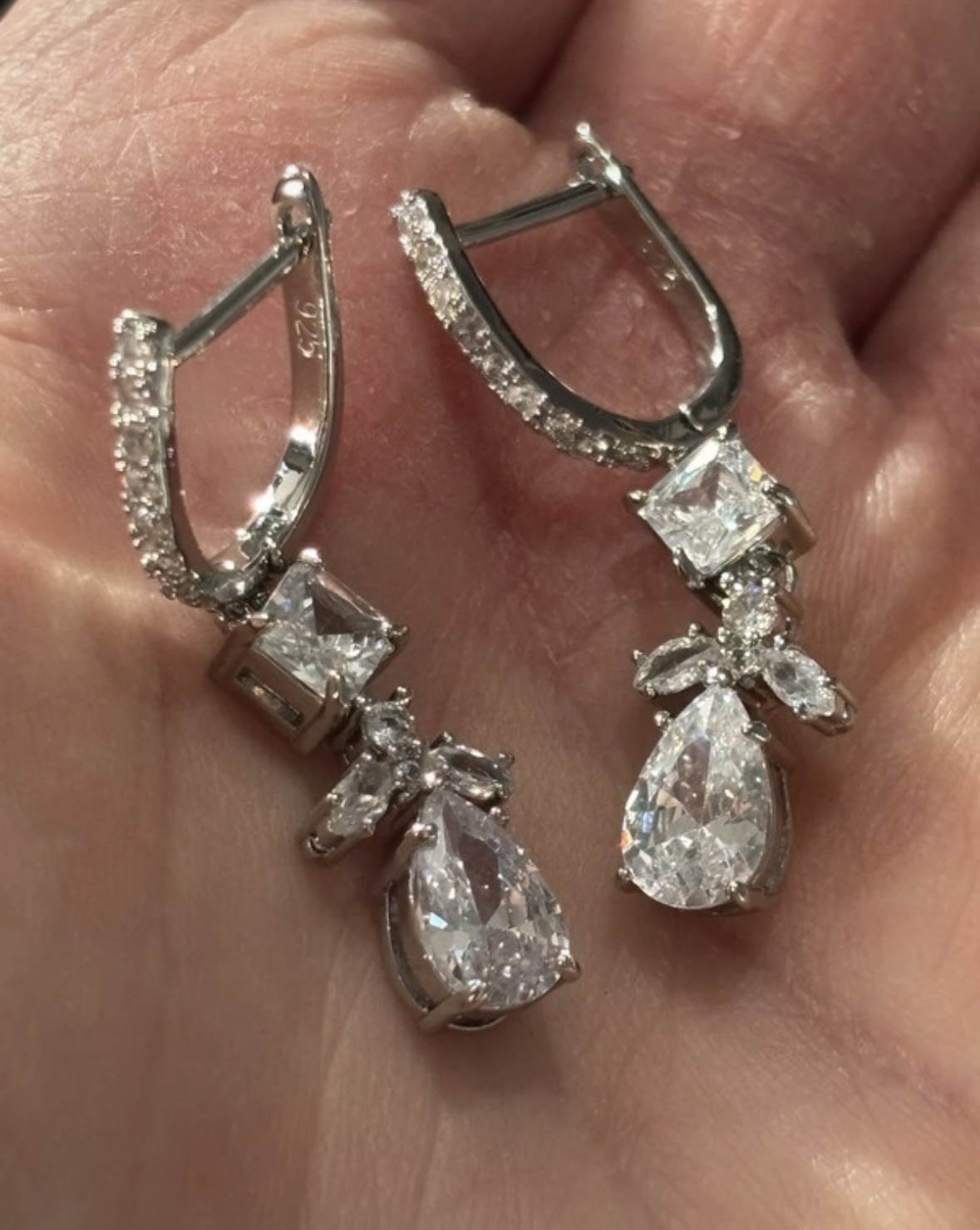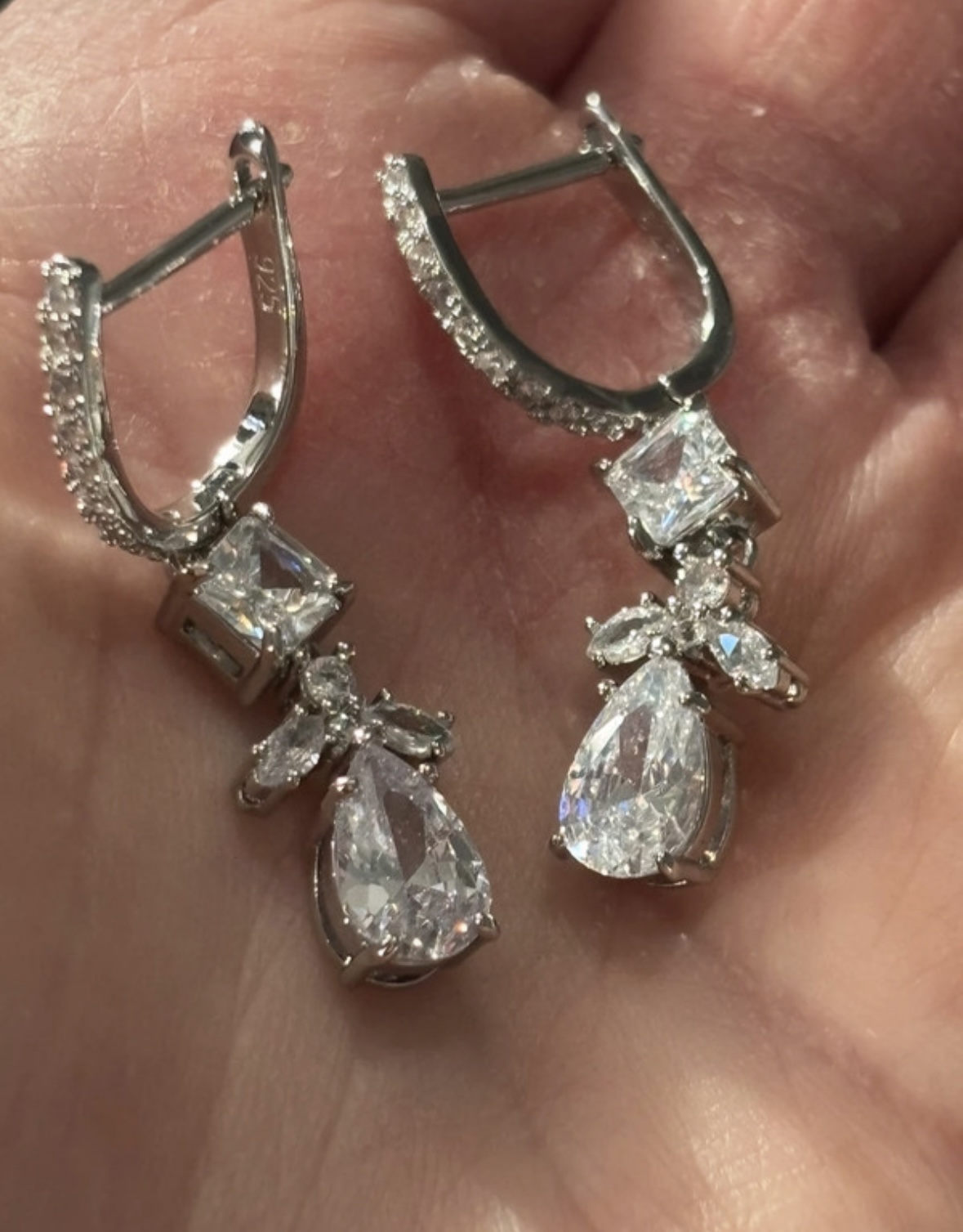 Sterling Silver Angel Clear Zircon Earrings In Box