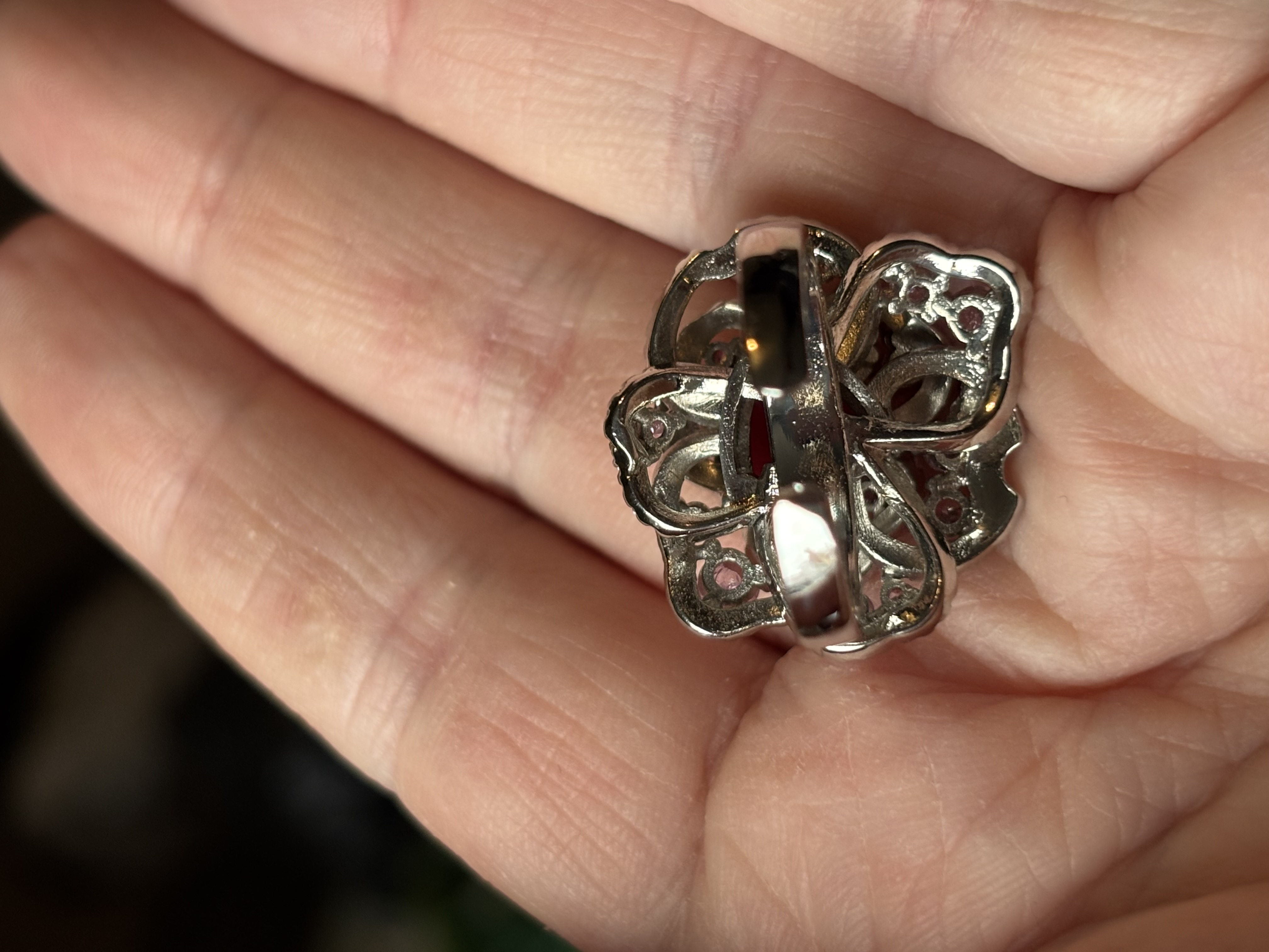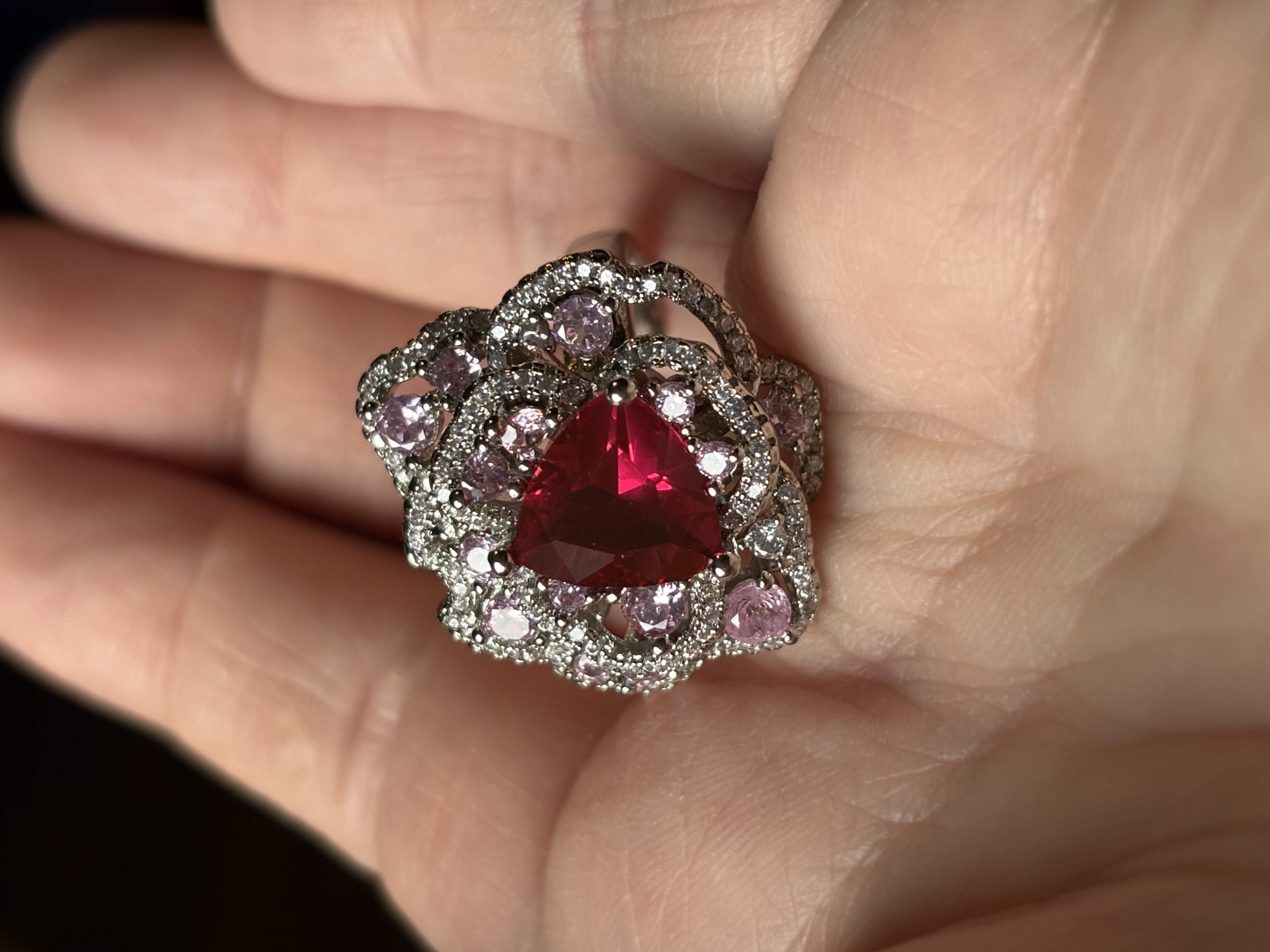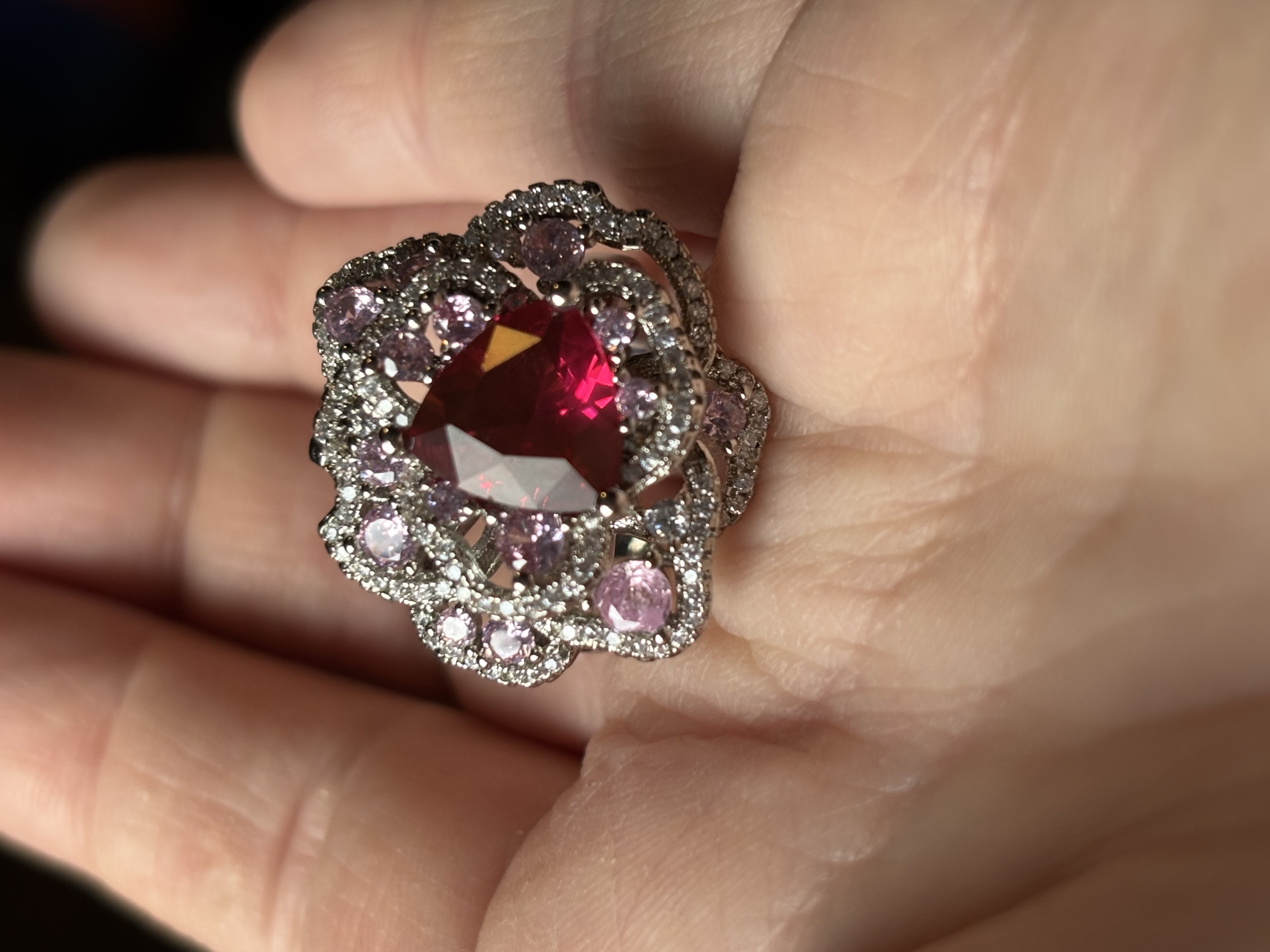 Sterling Silver Clear, Red & Pink Zircon Ring