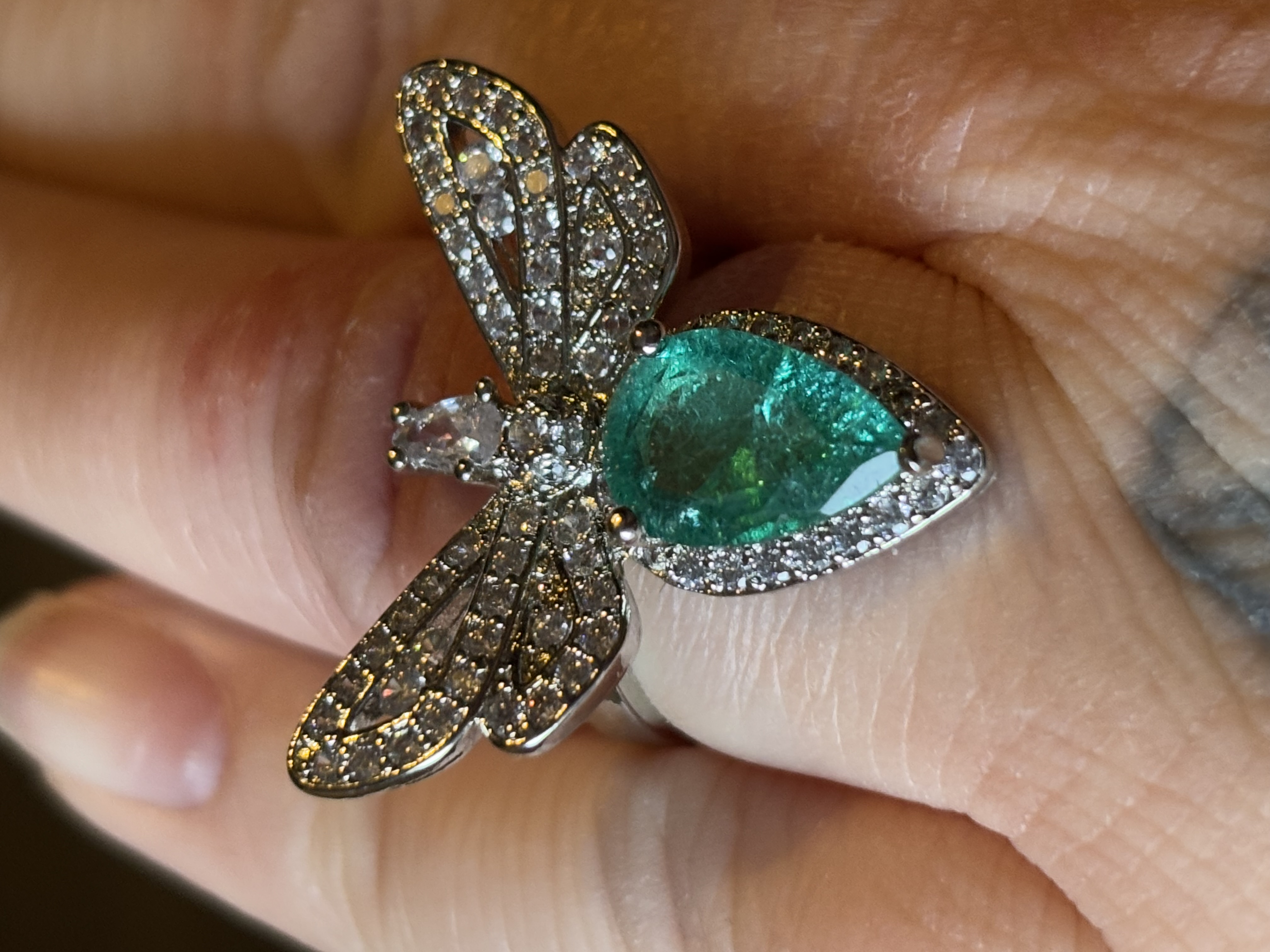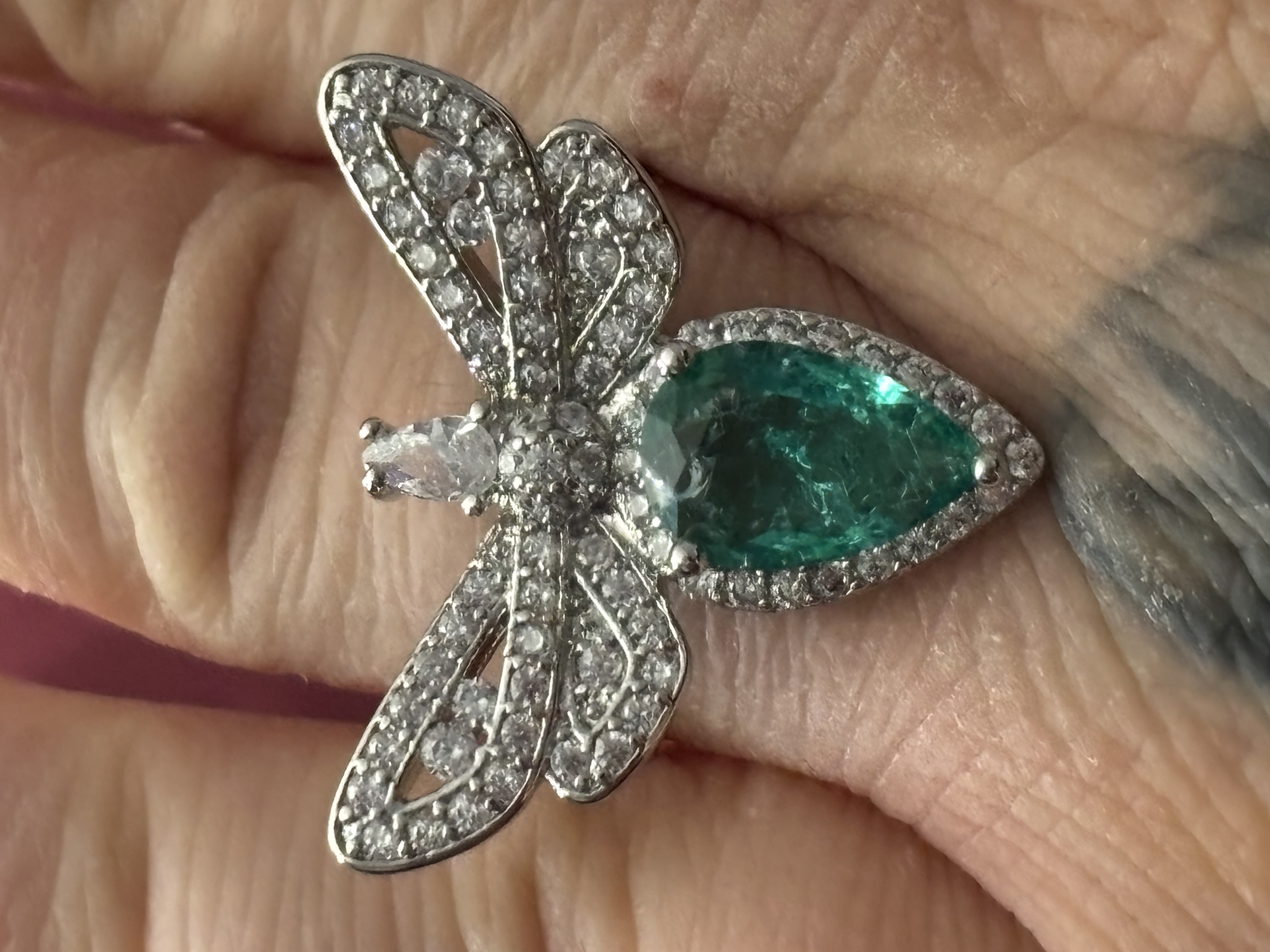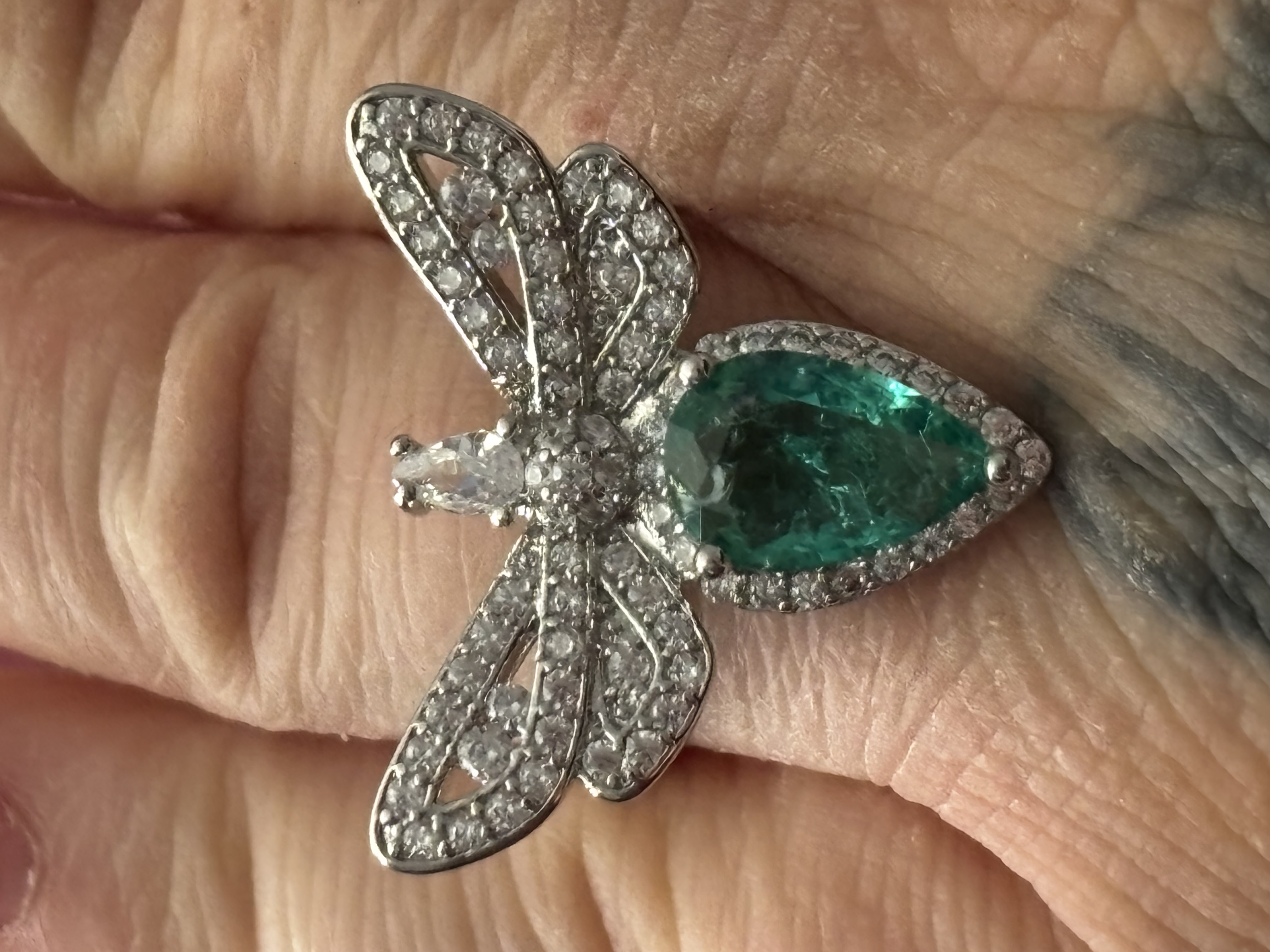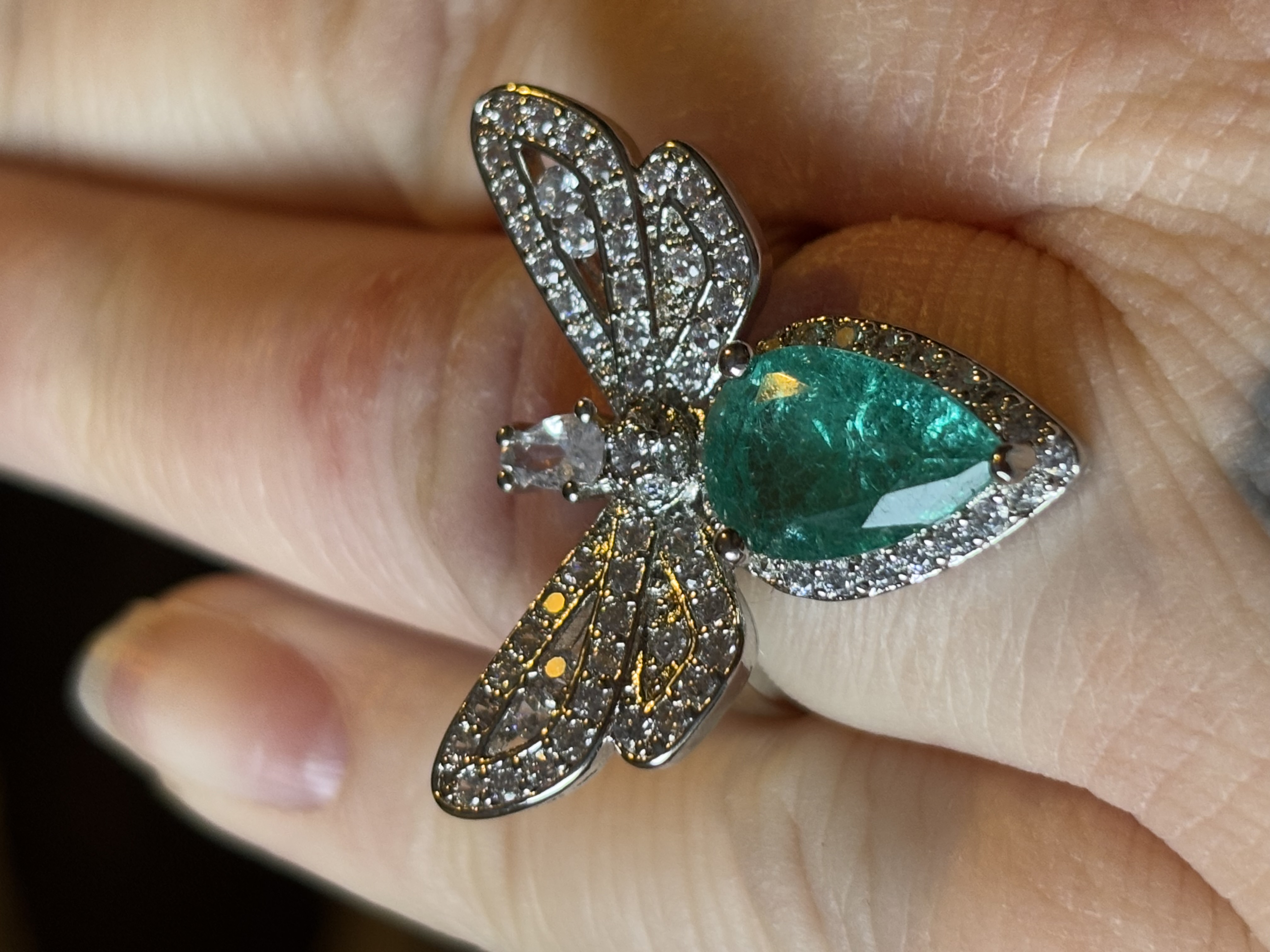 Sterling Silver Green Zircon Dragonfly Ring In box