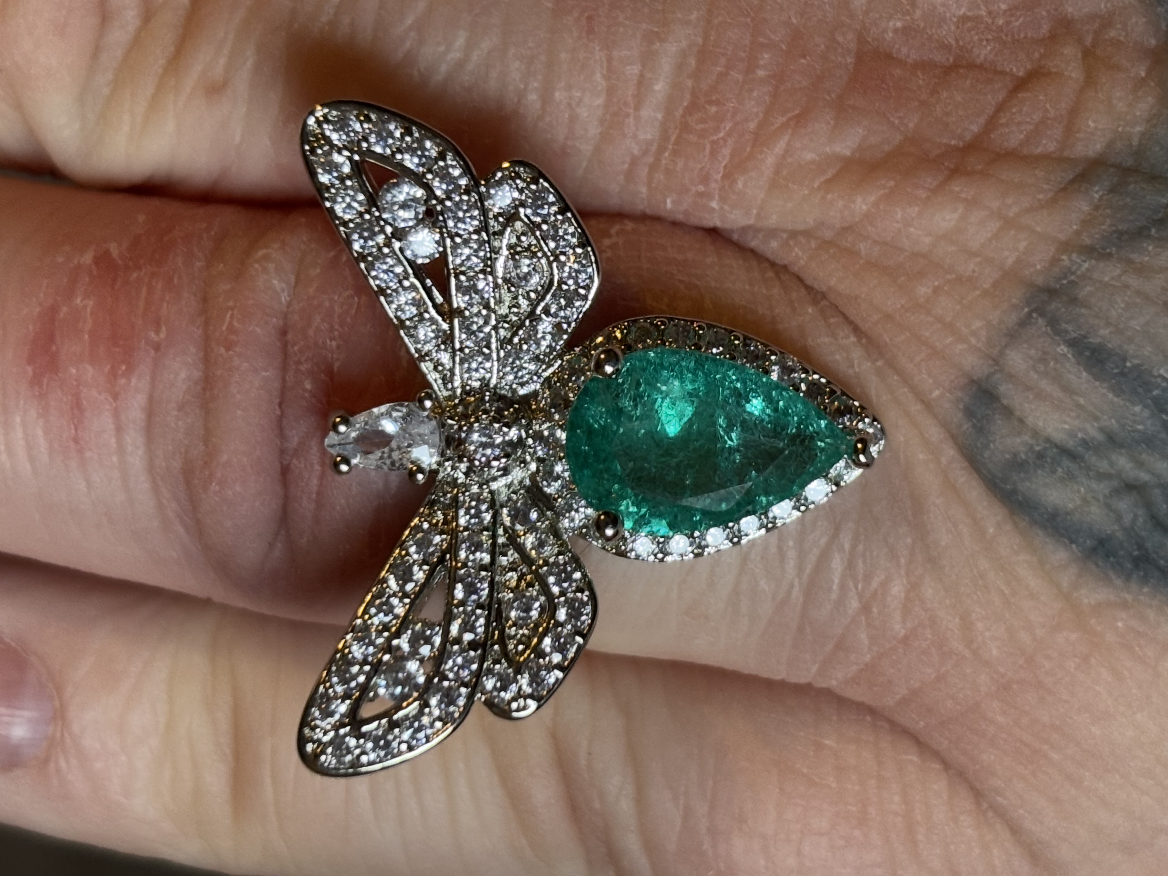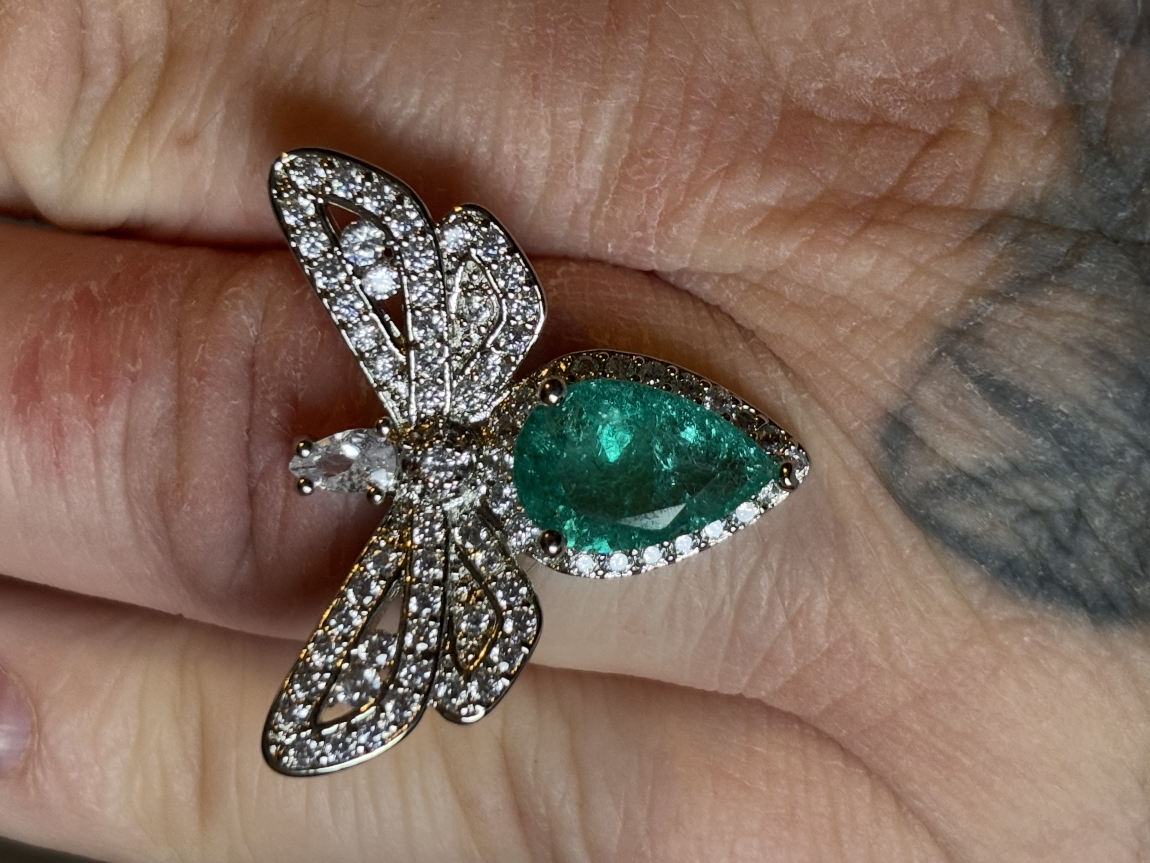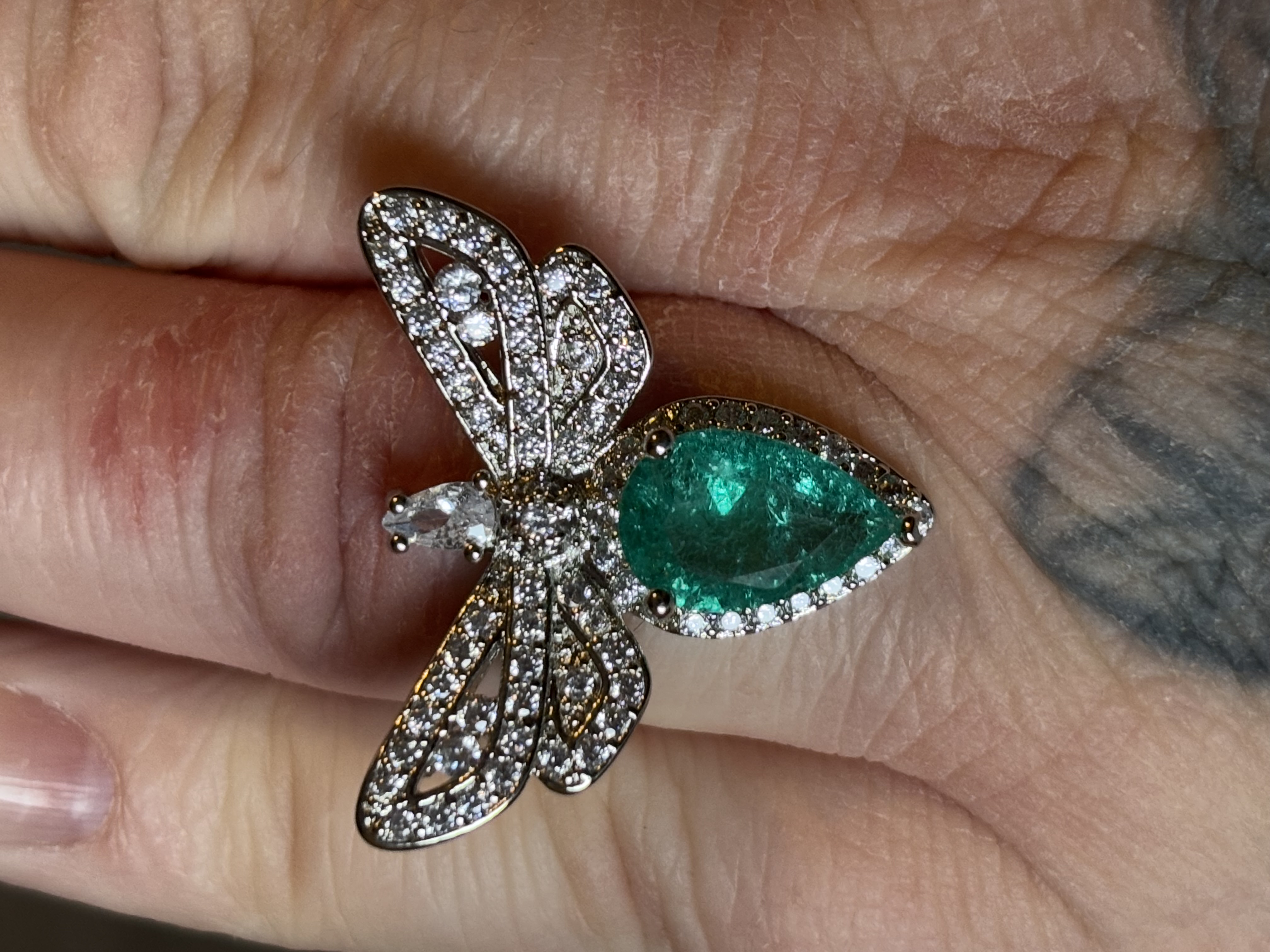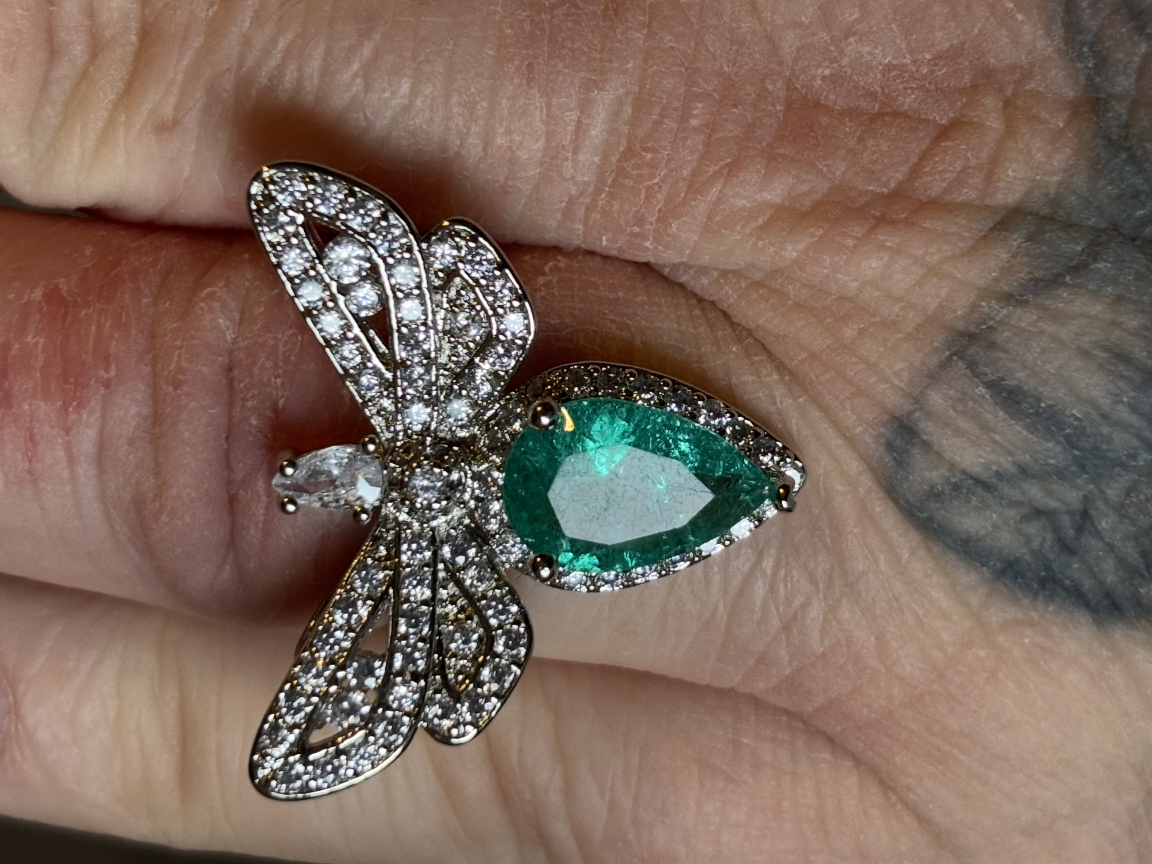 Sterling Silver Green Zircon Dragonfly Ring In box