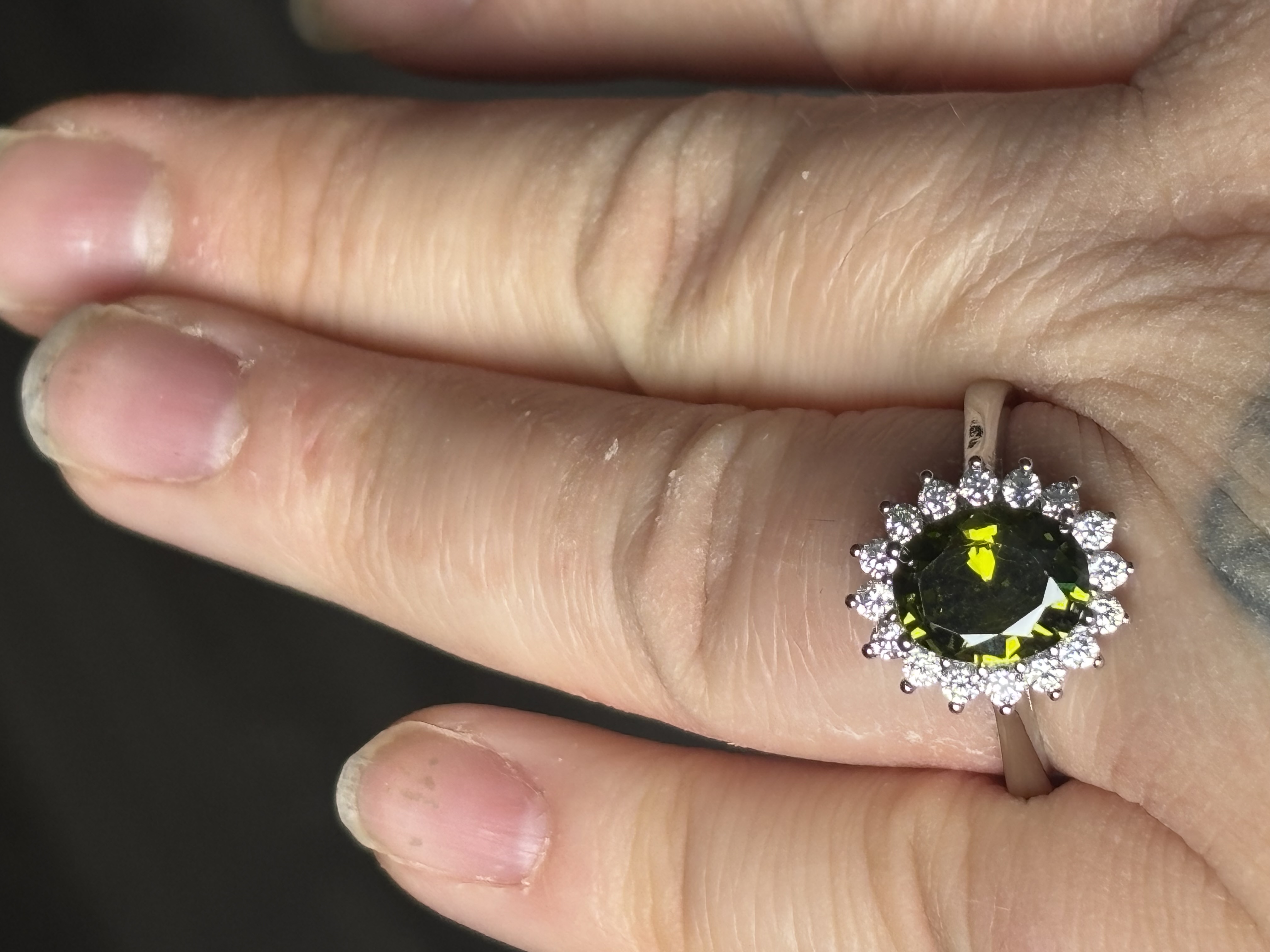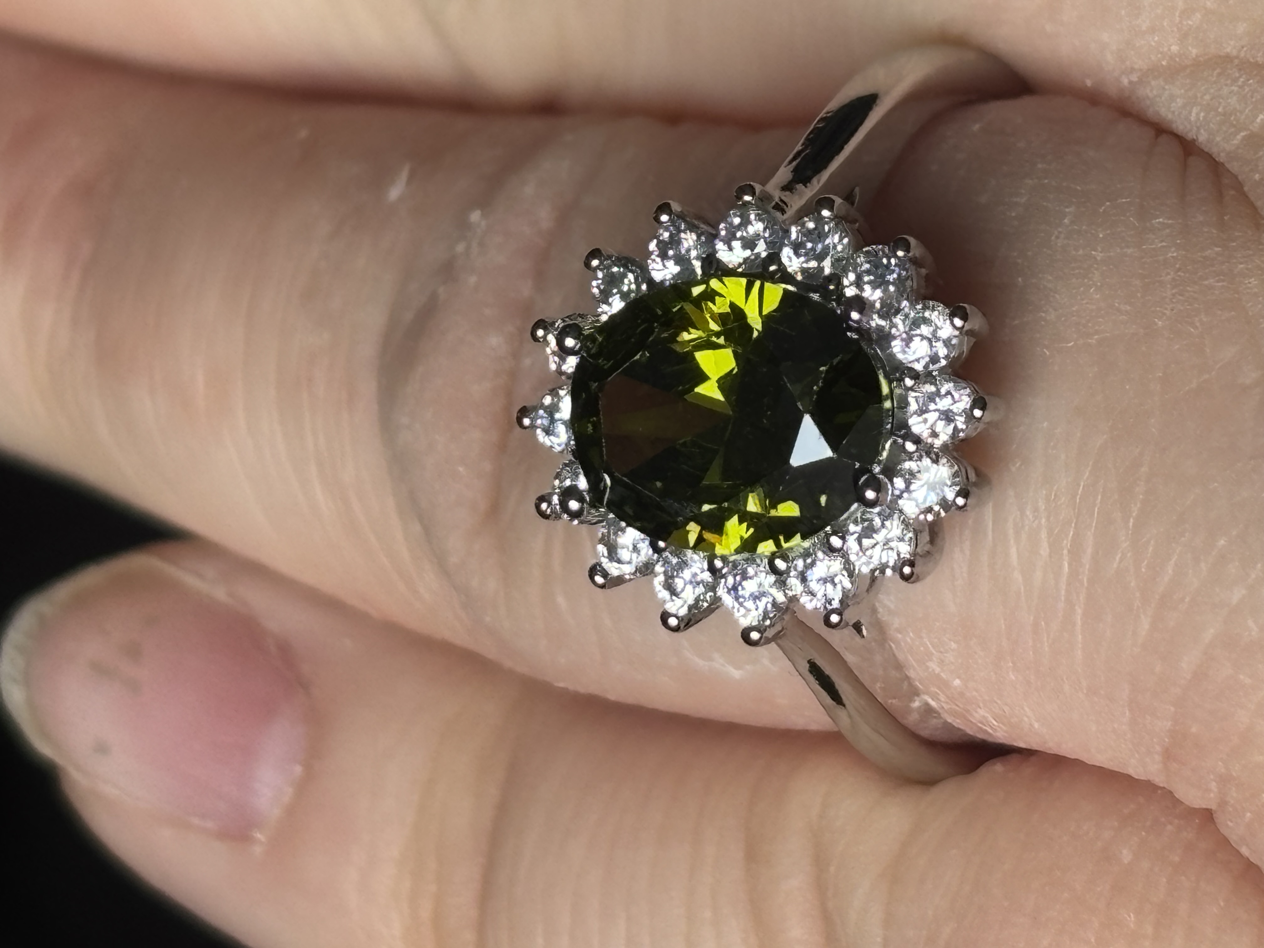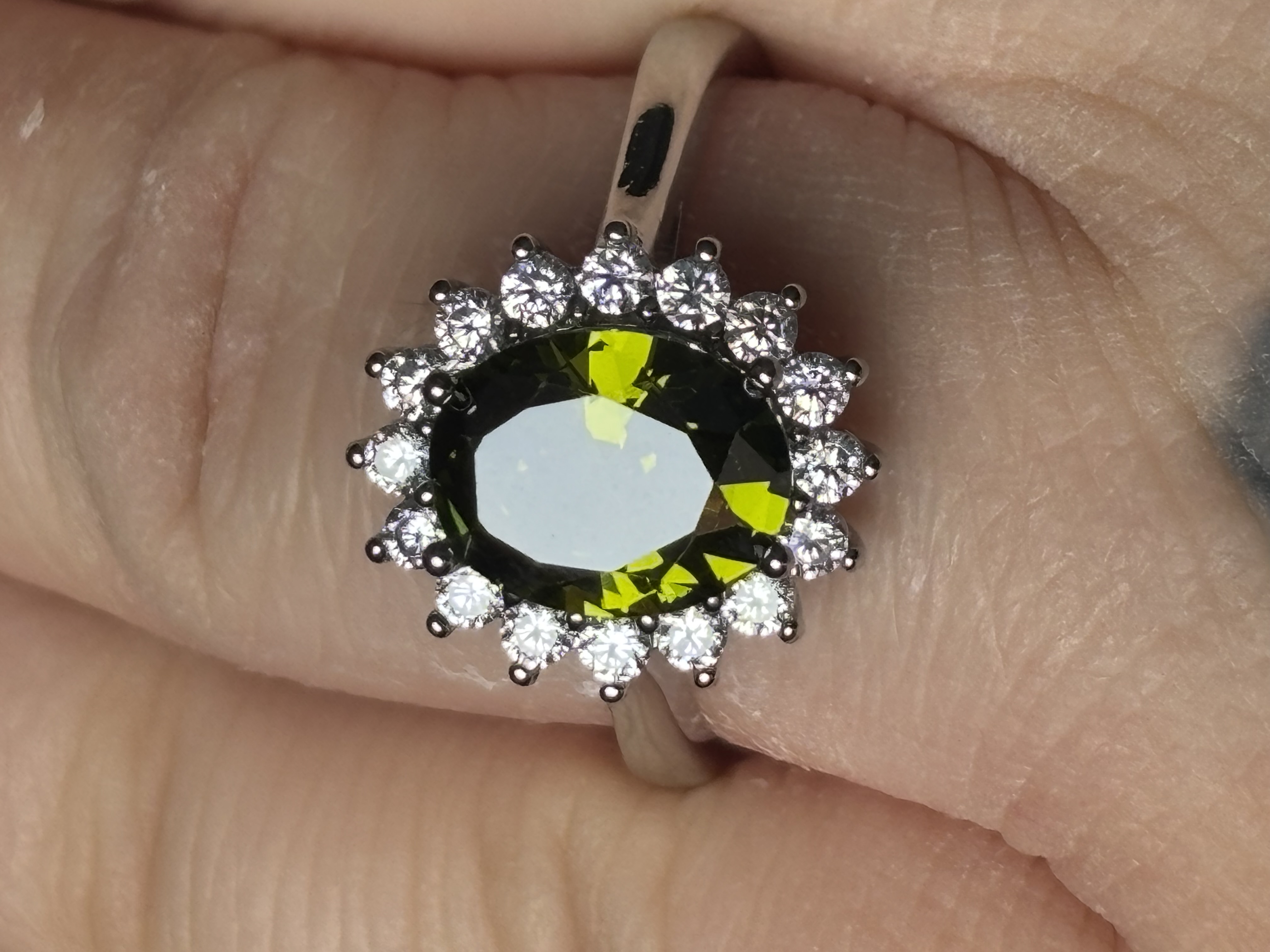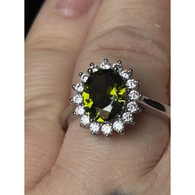 Sterling Silver Peridot & Clear Zircon Ring In box