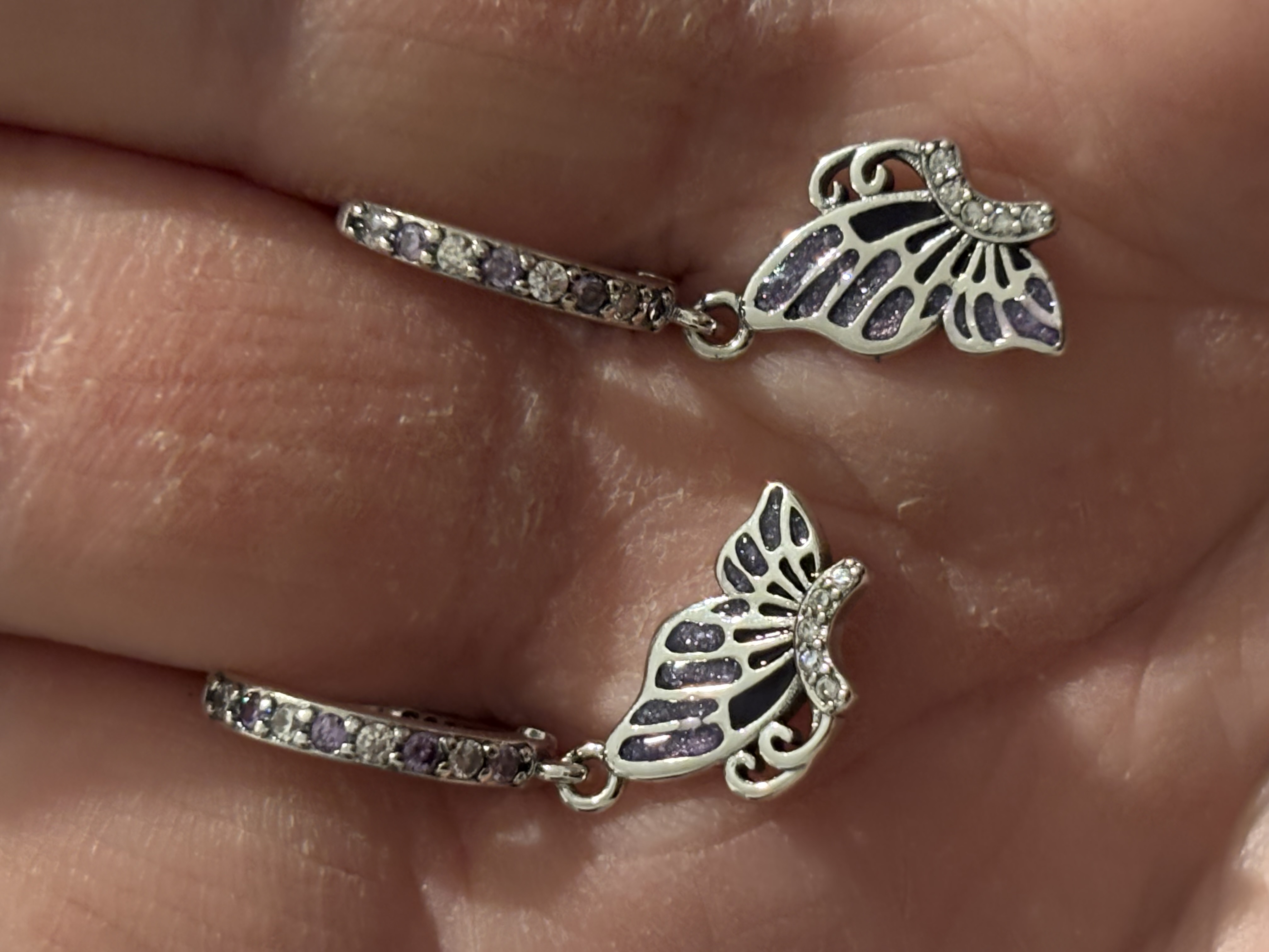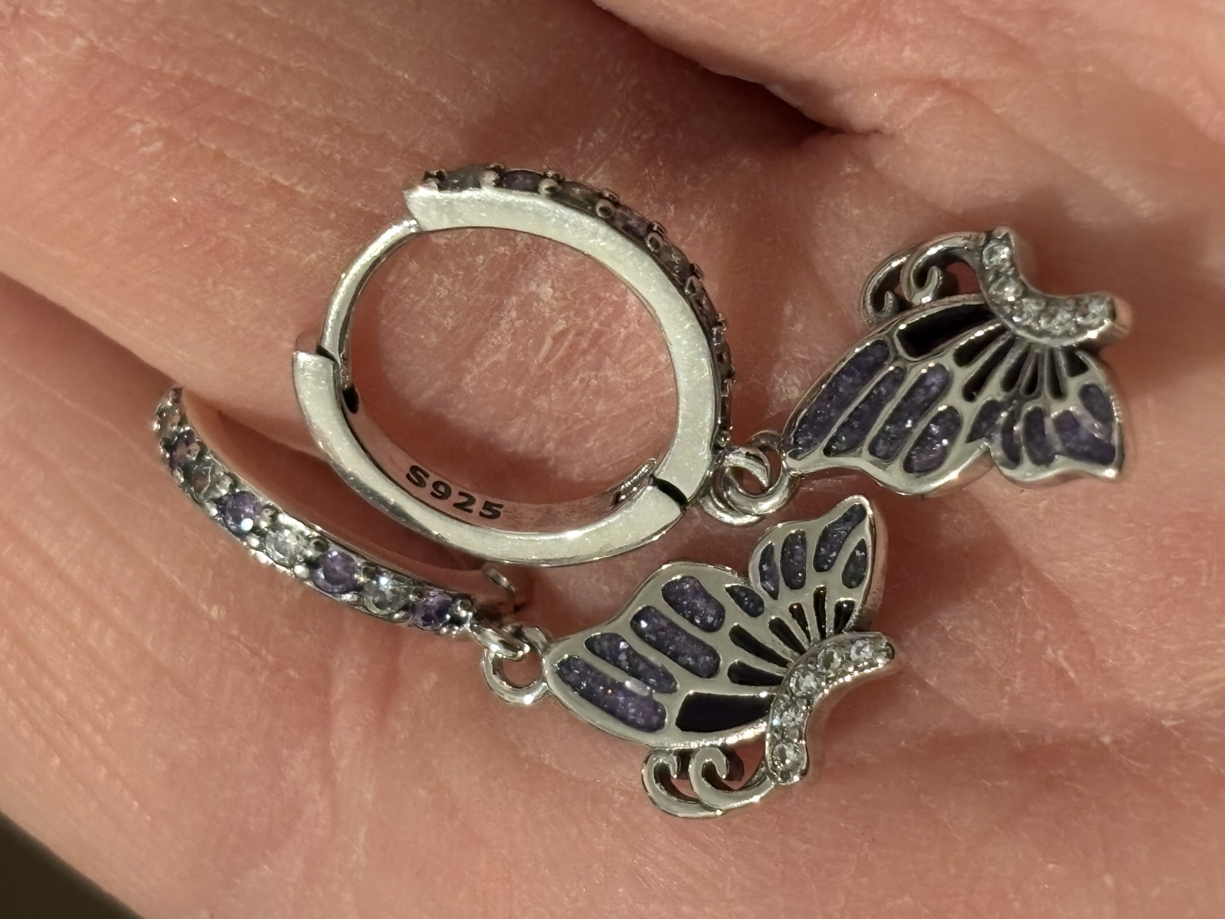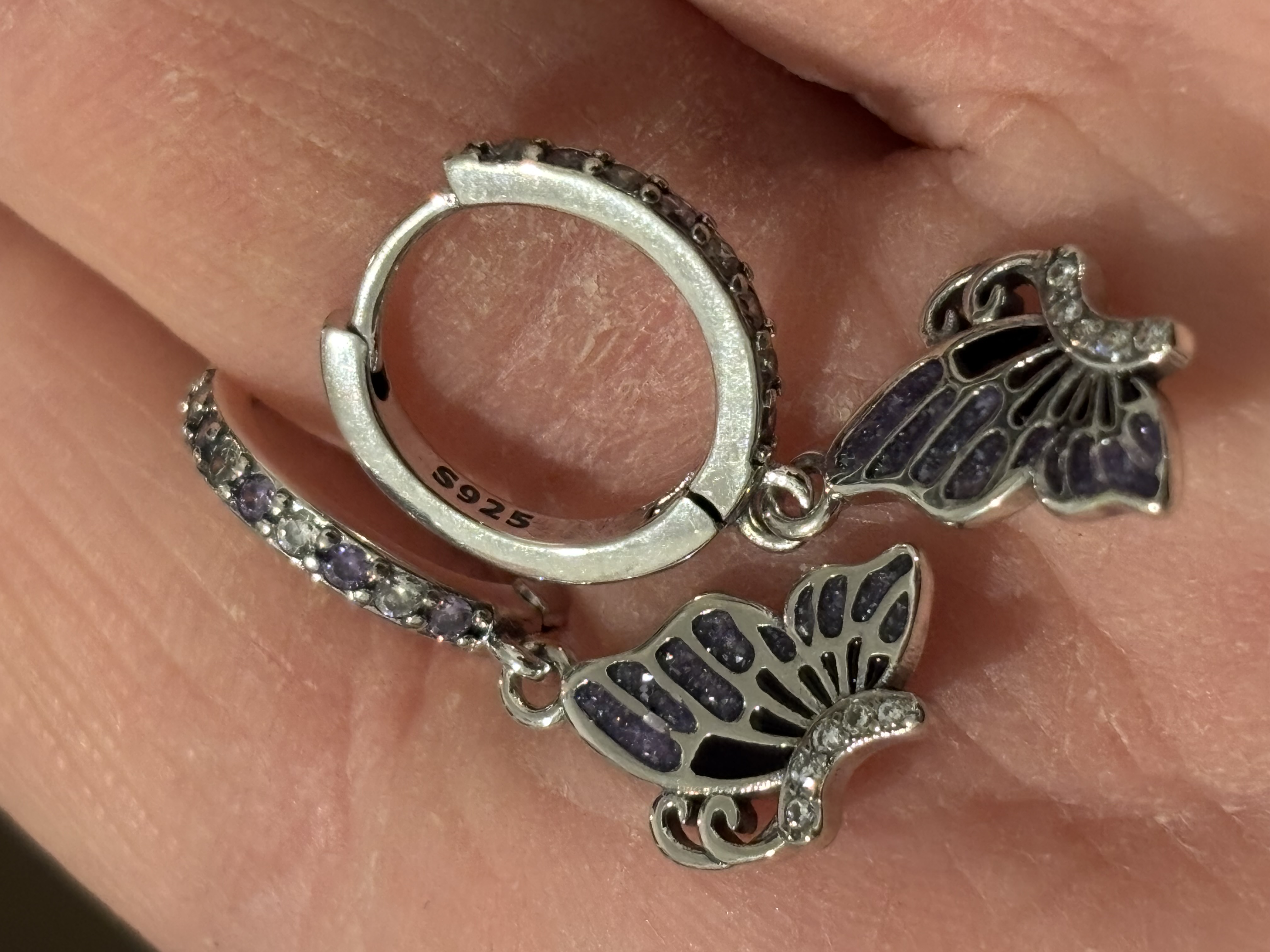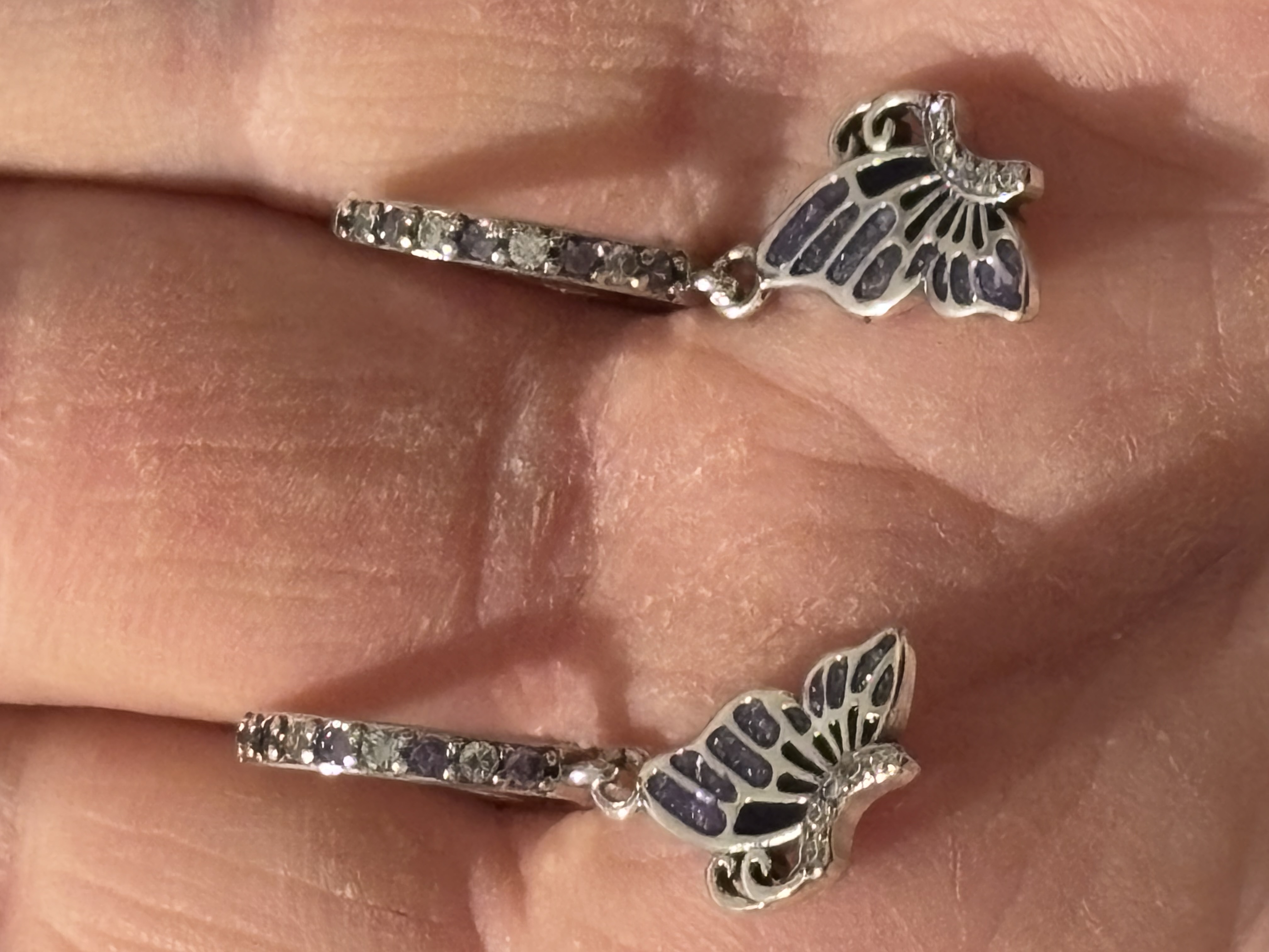 Sterling Silver Purple Zircon & Black Enamel Butterfly Earrings