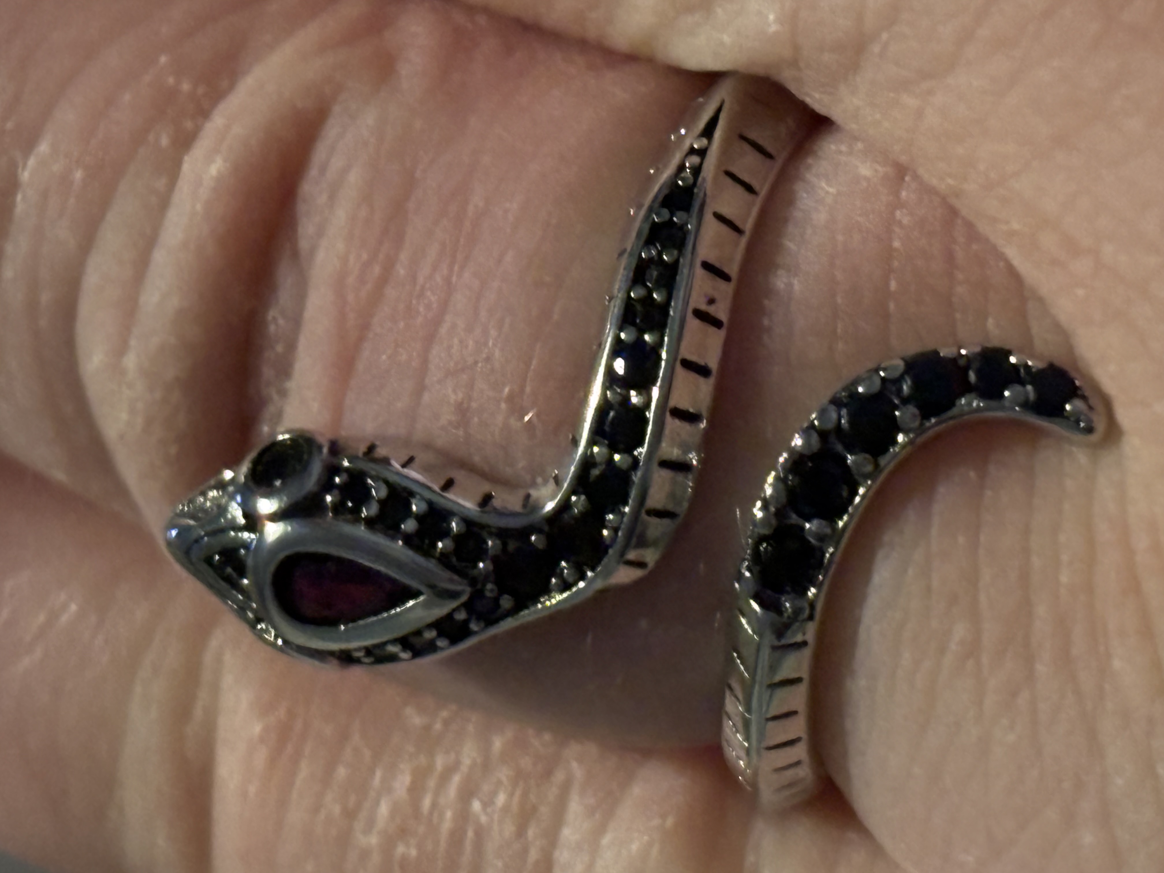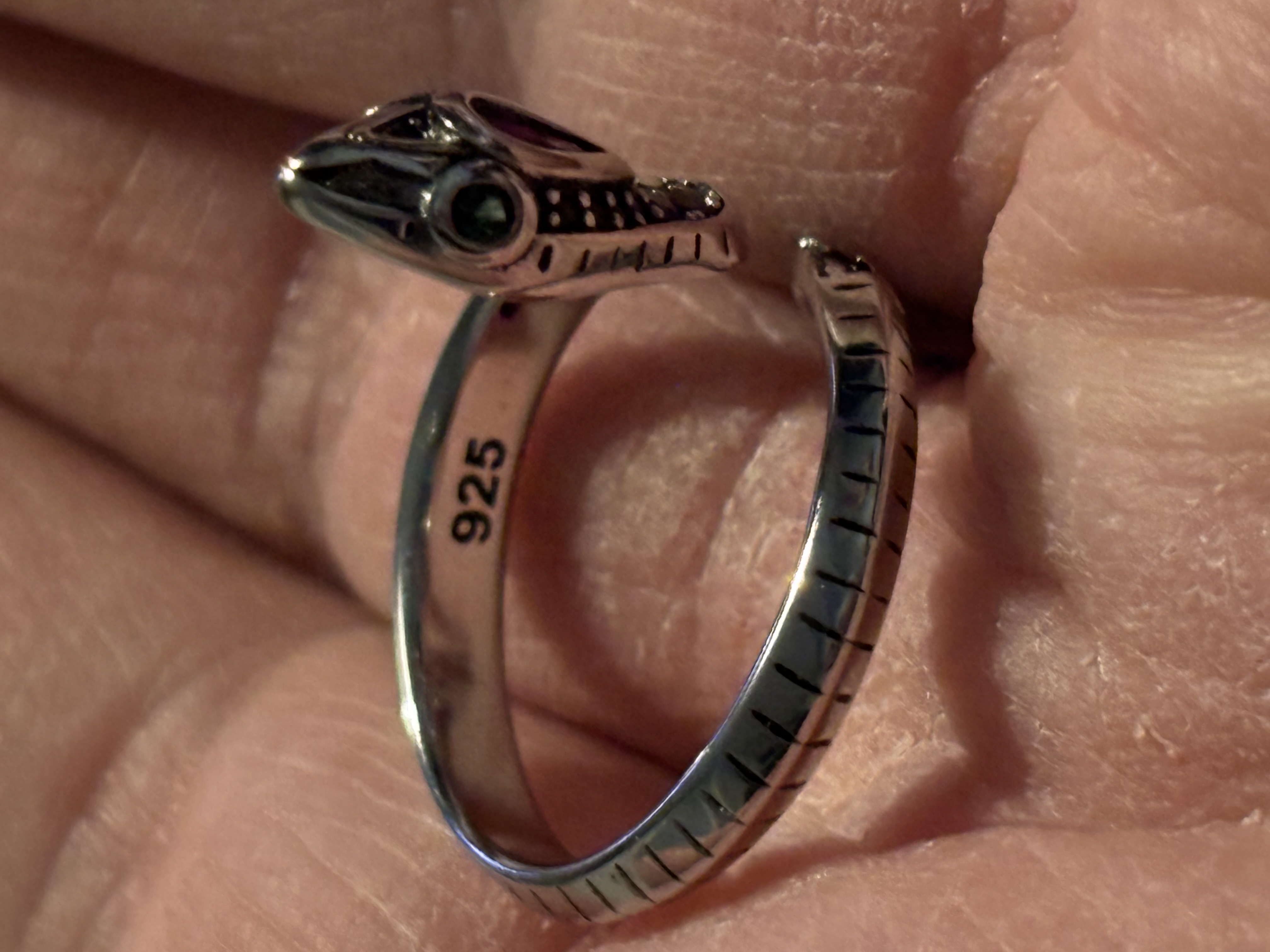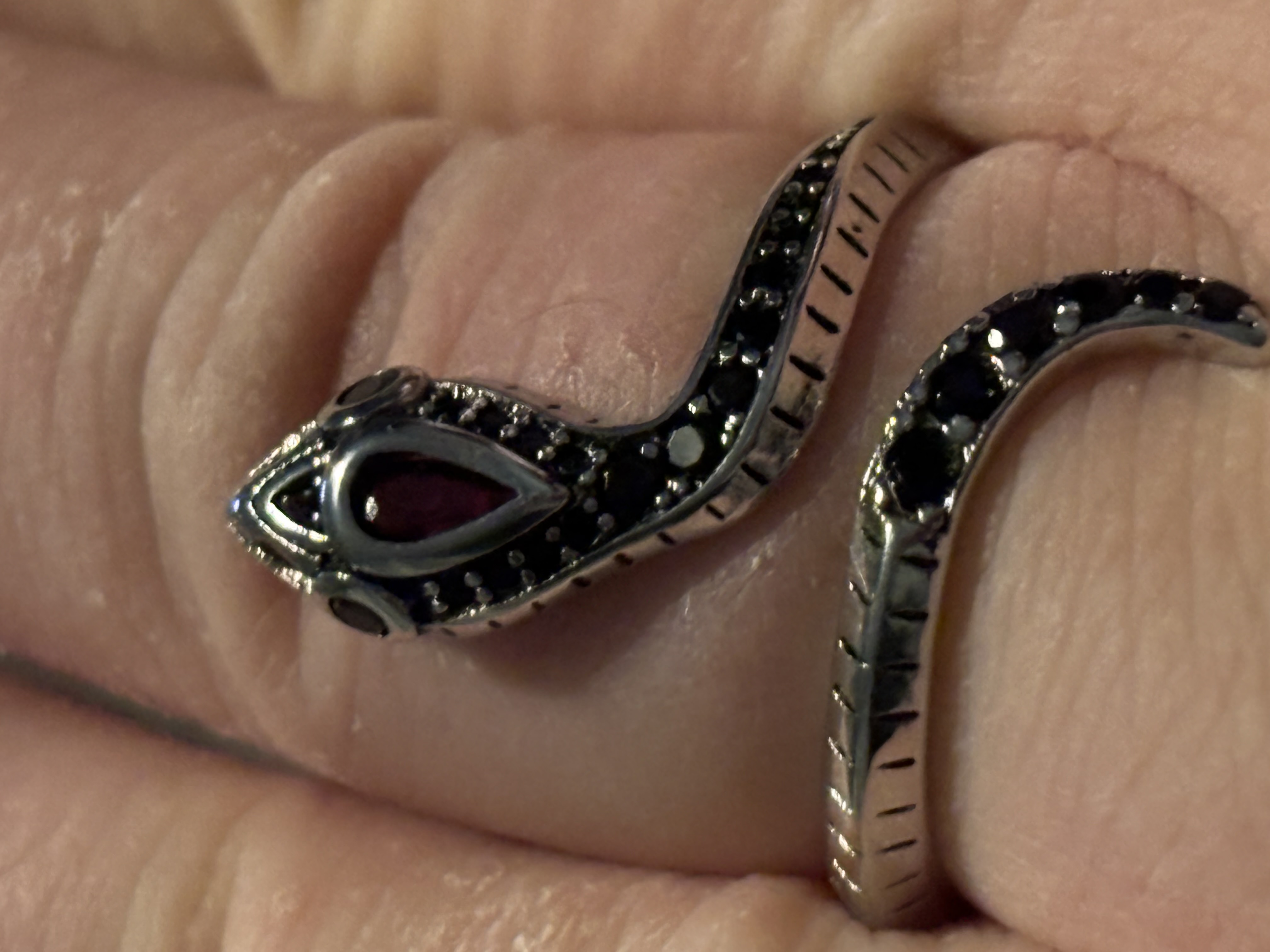 Sterling Silver Red & Black Zircon Snake Adjustable Ring