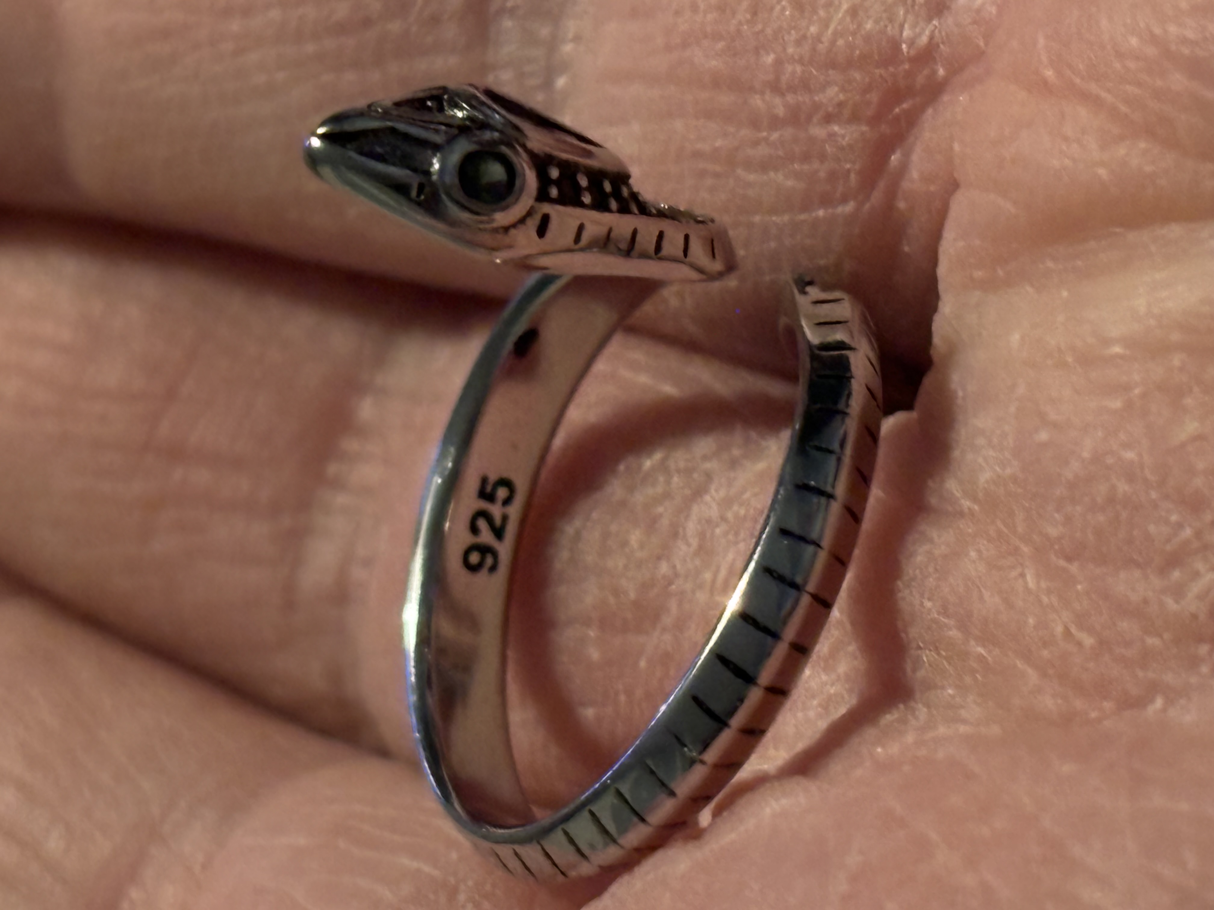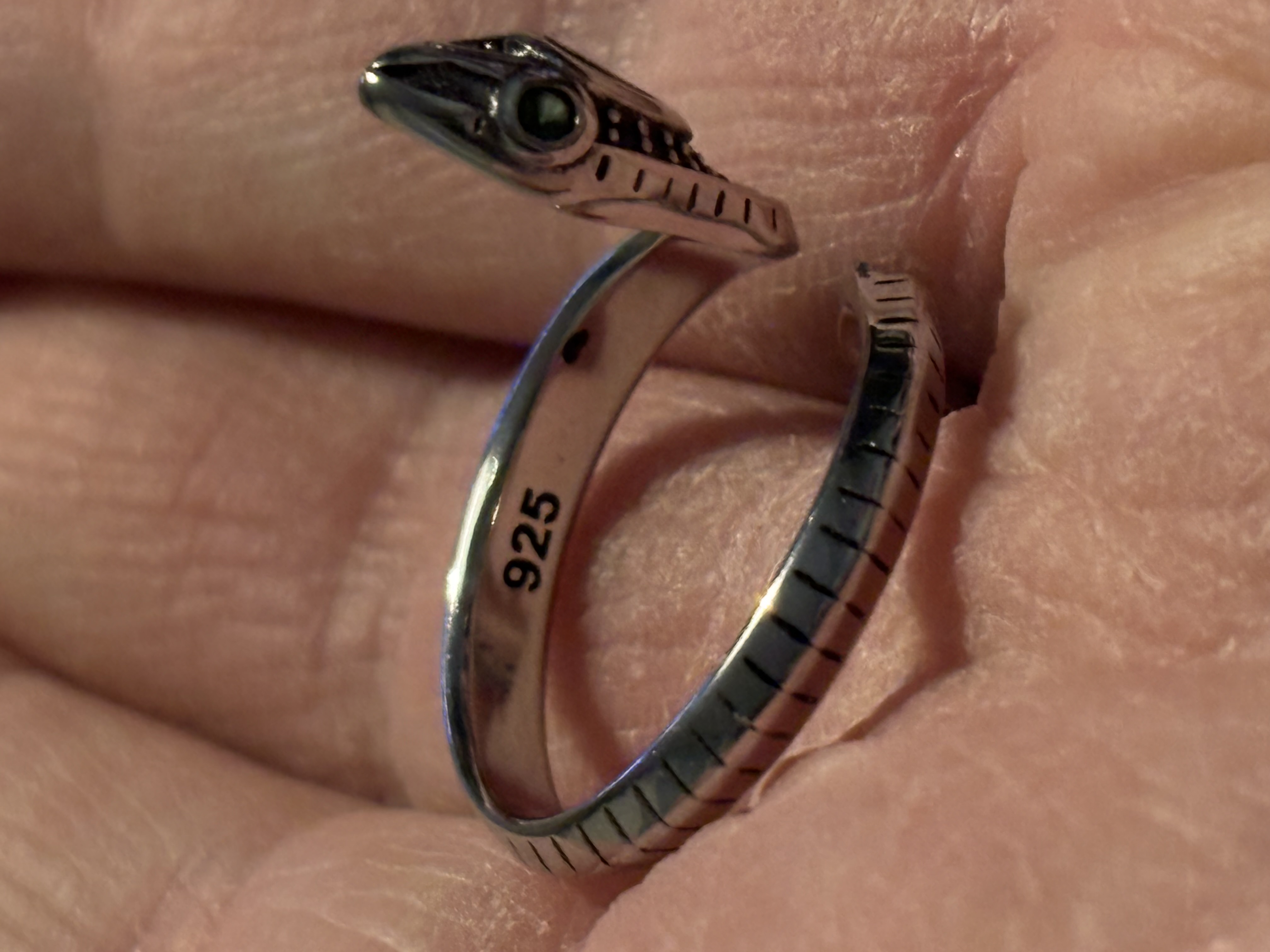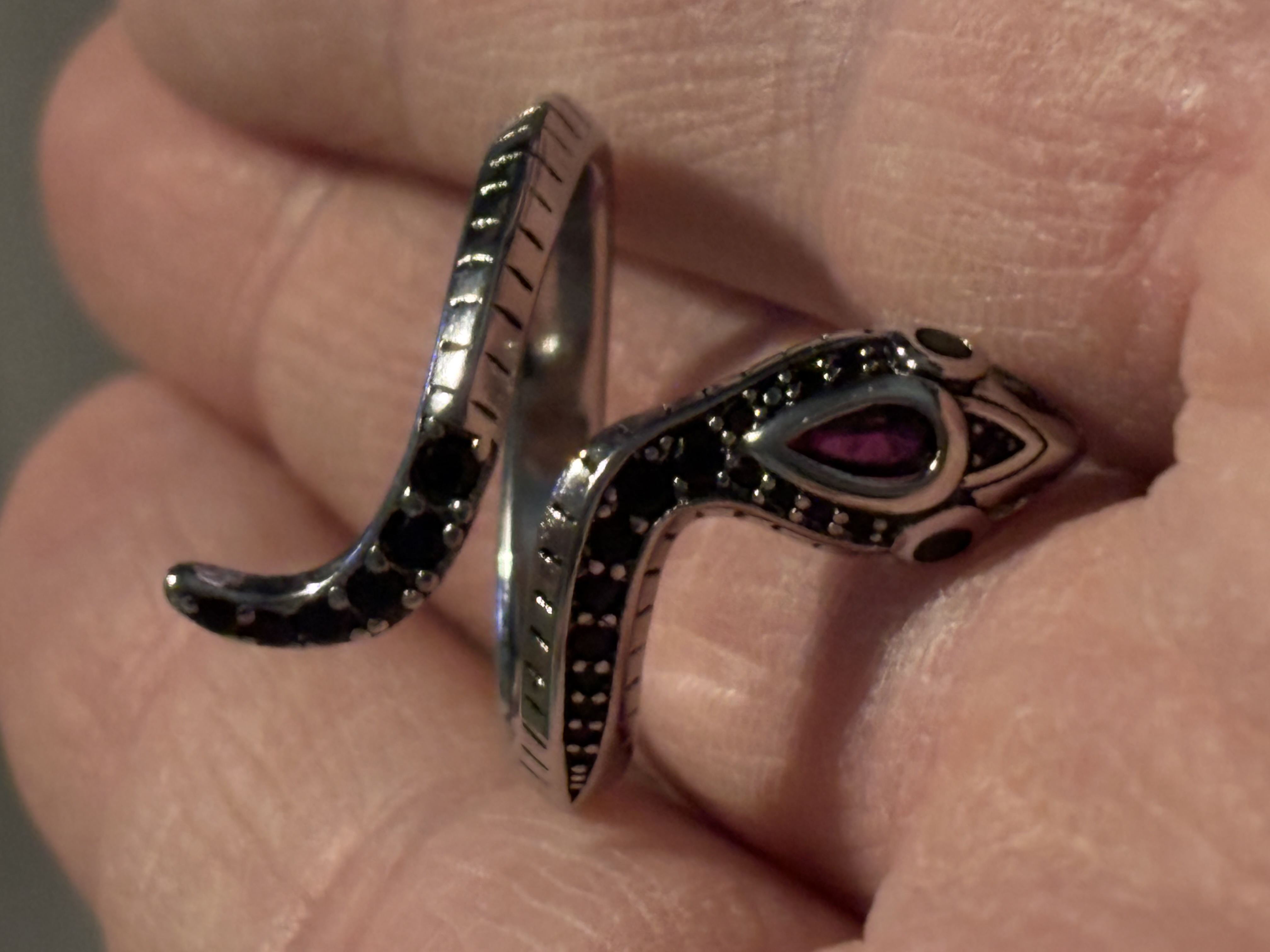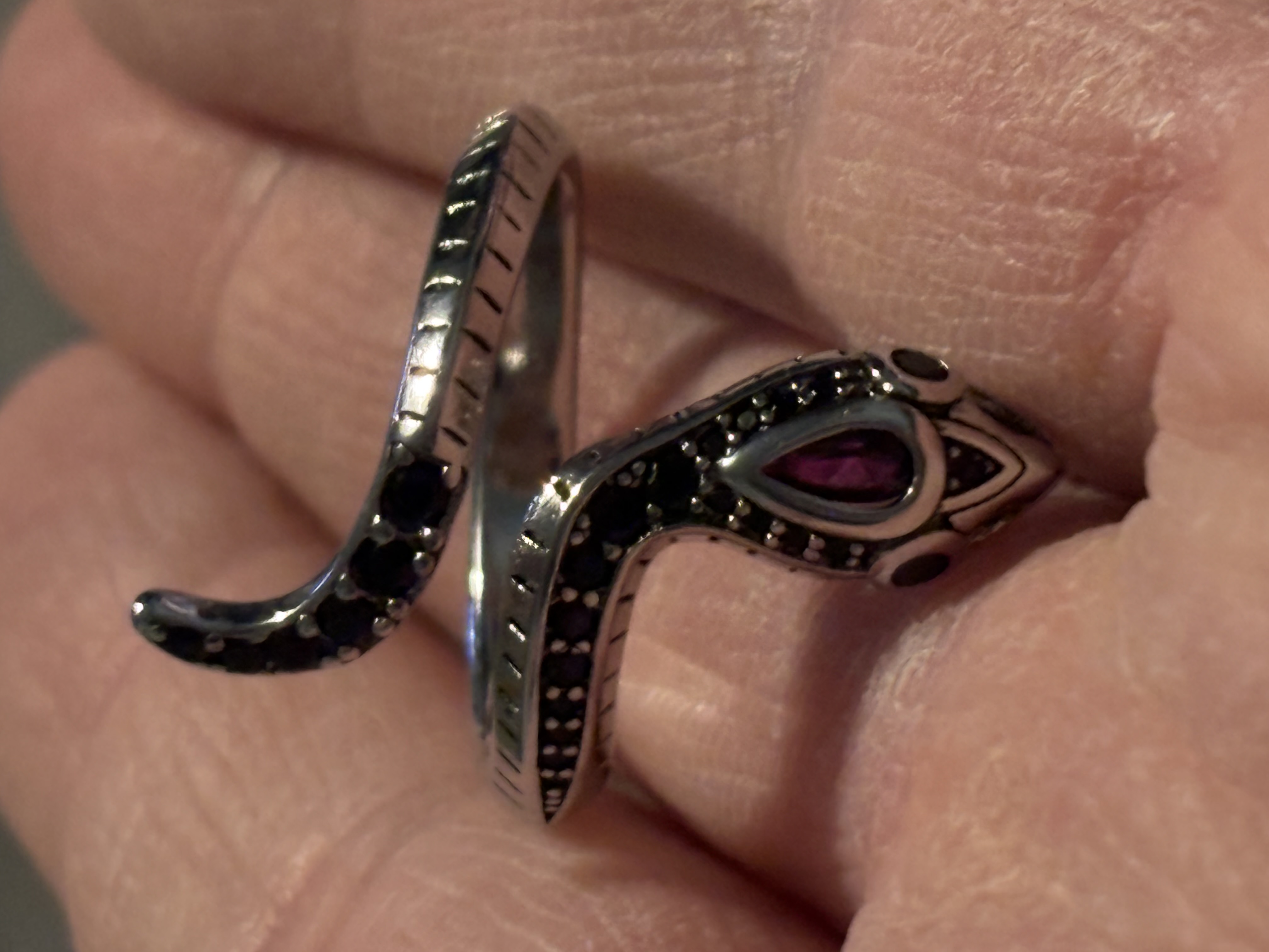 Sterling Silver Red & Black Zircon Snake Adjustable Ring