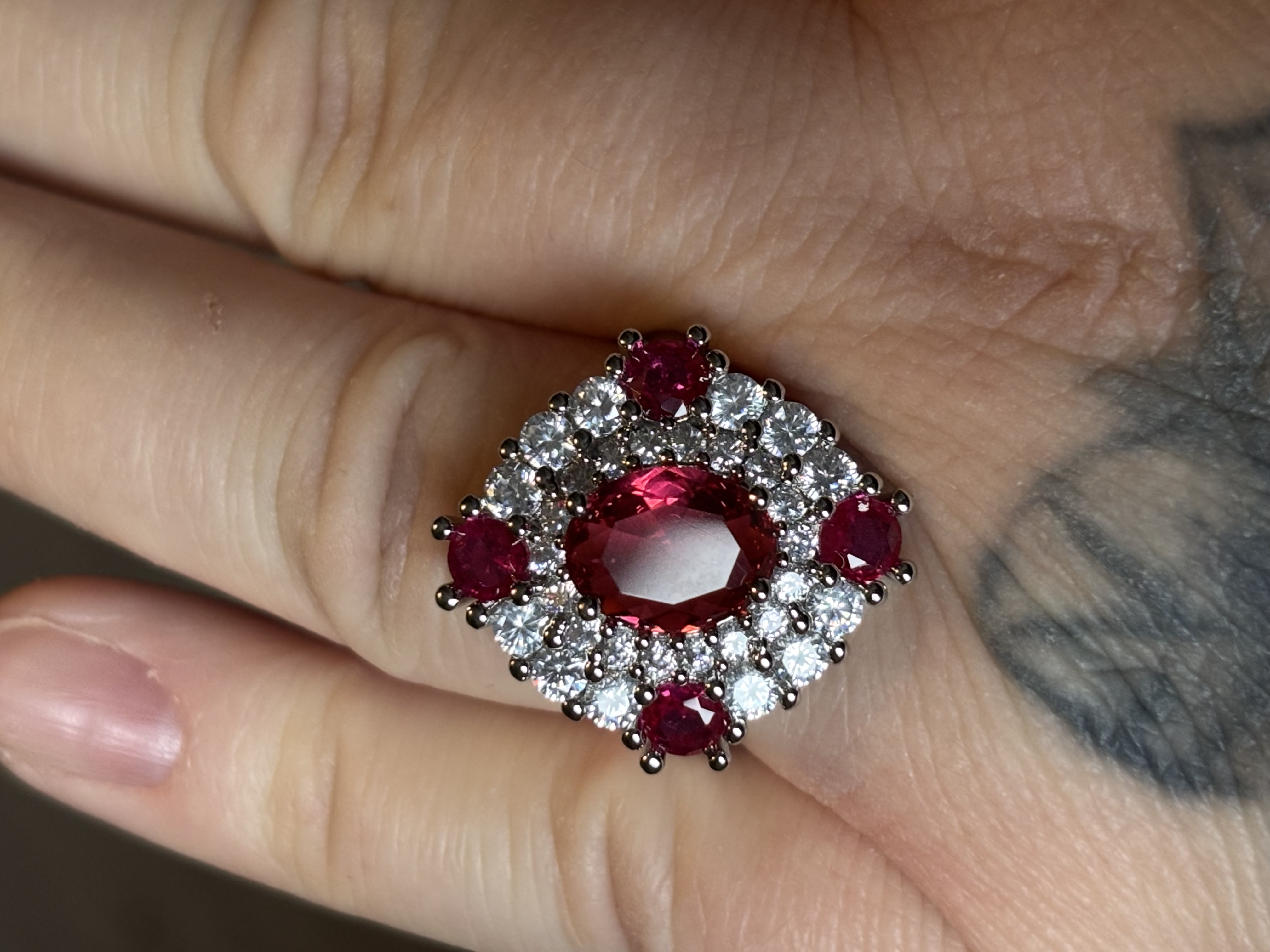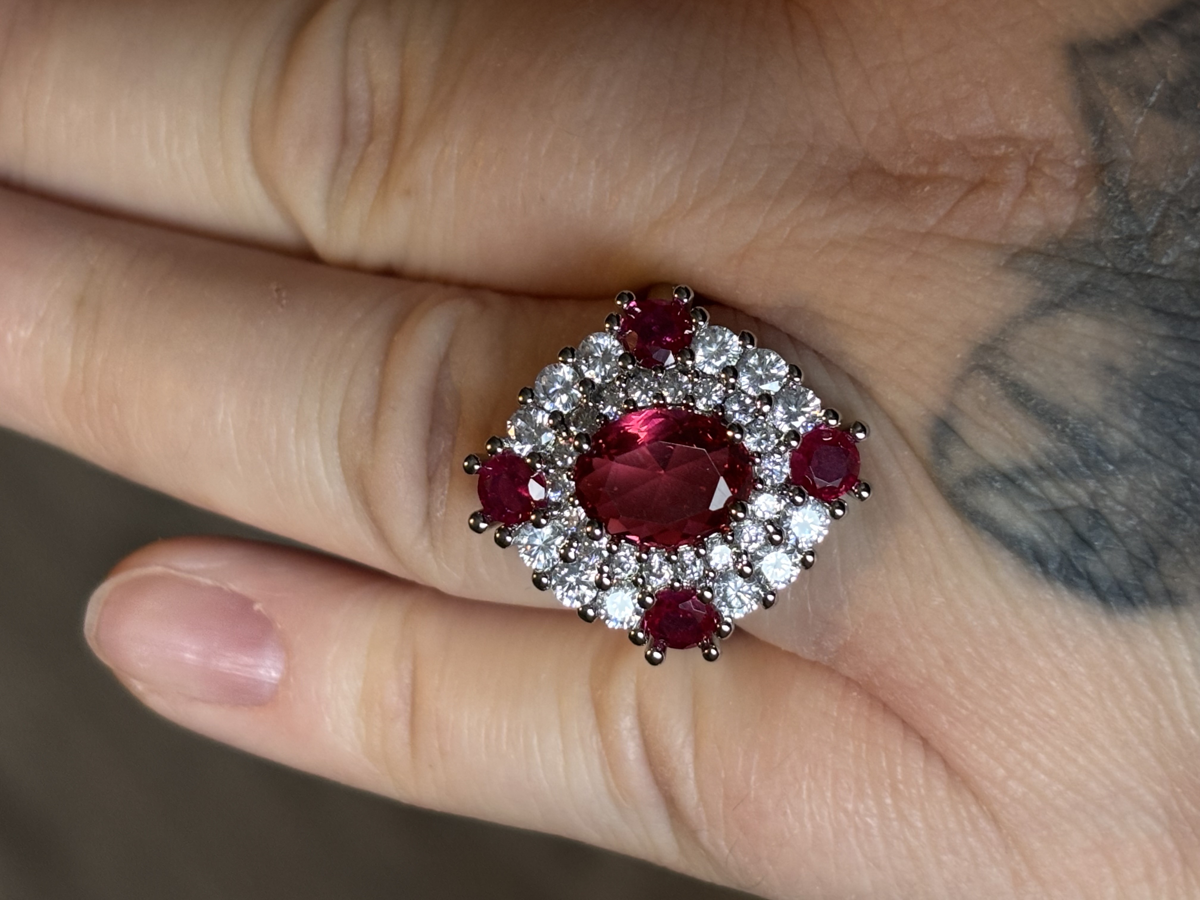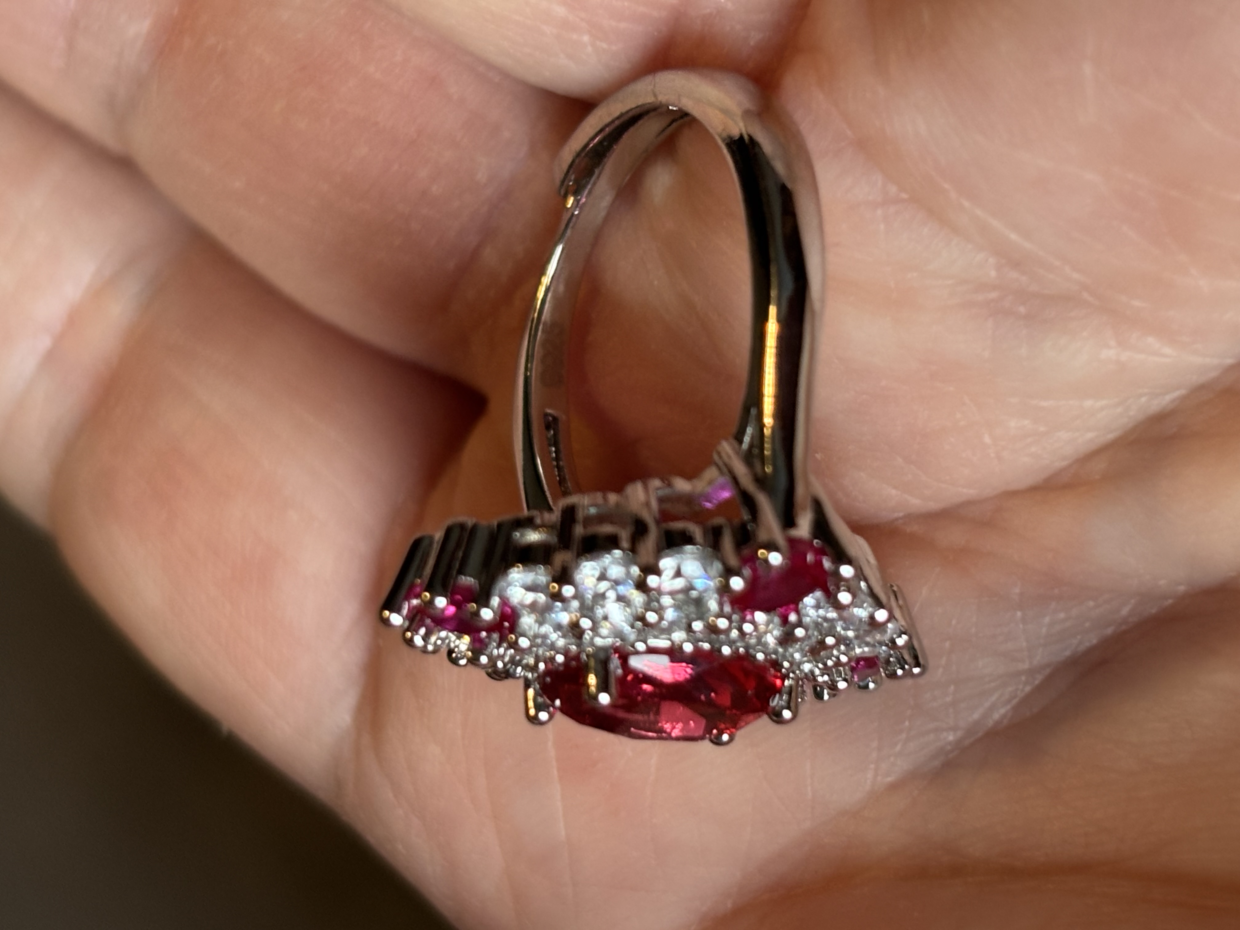 Sterling Silver Red & Clear Zircon Ring Comes in box.