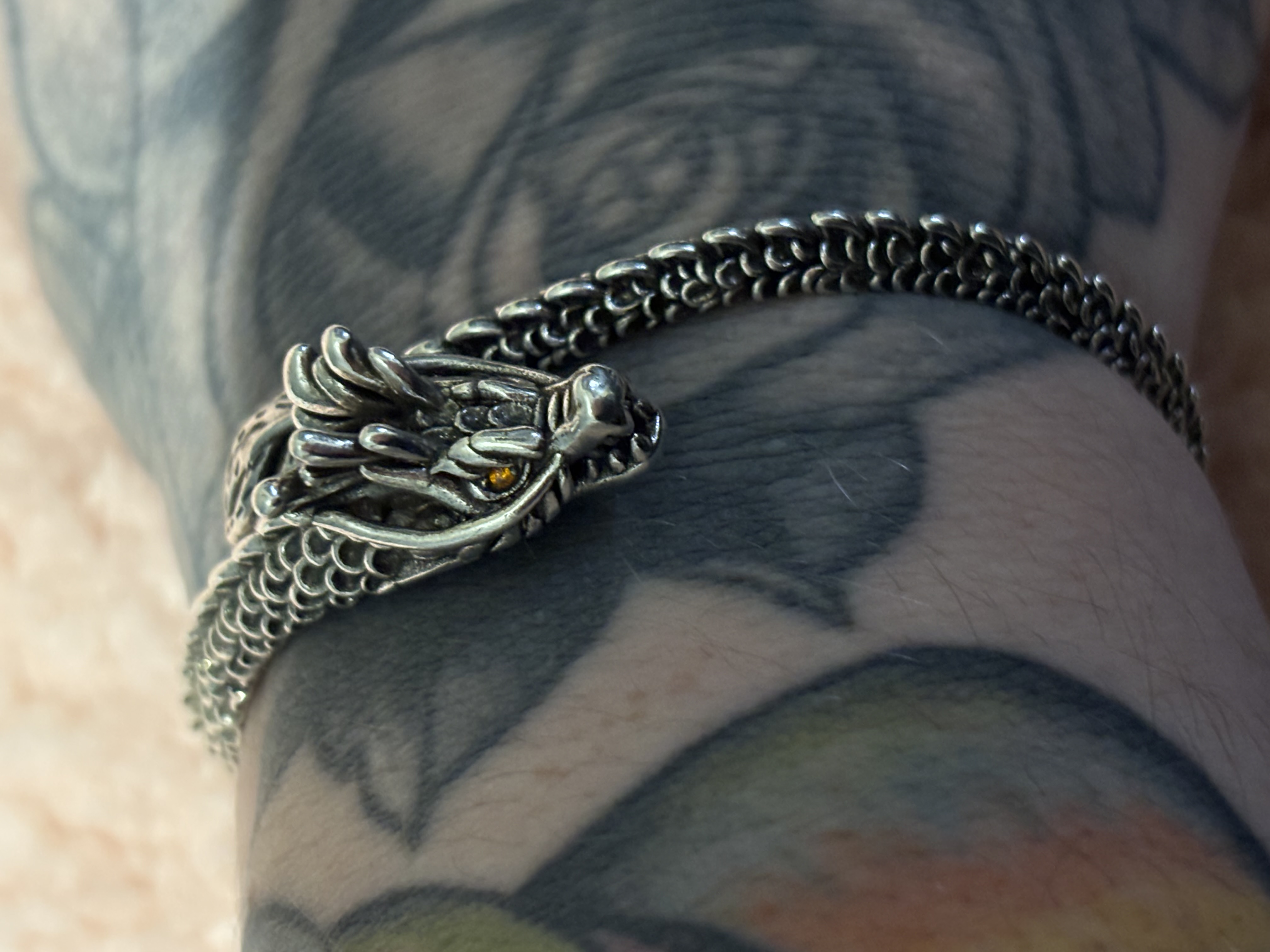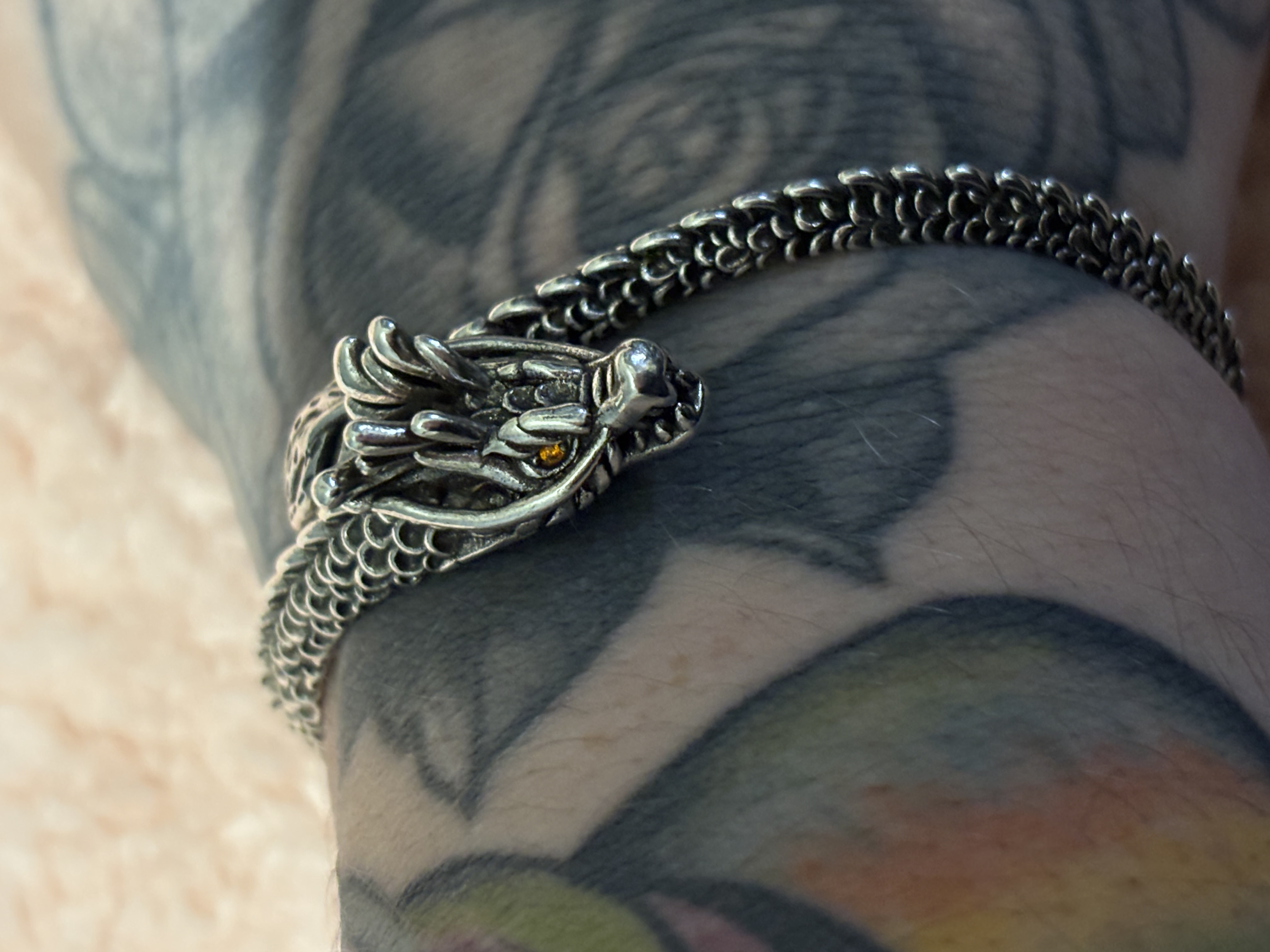 Sterling Silver Unisex Dragon Bangle Bracelet