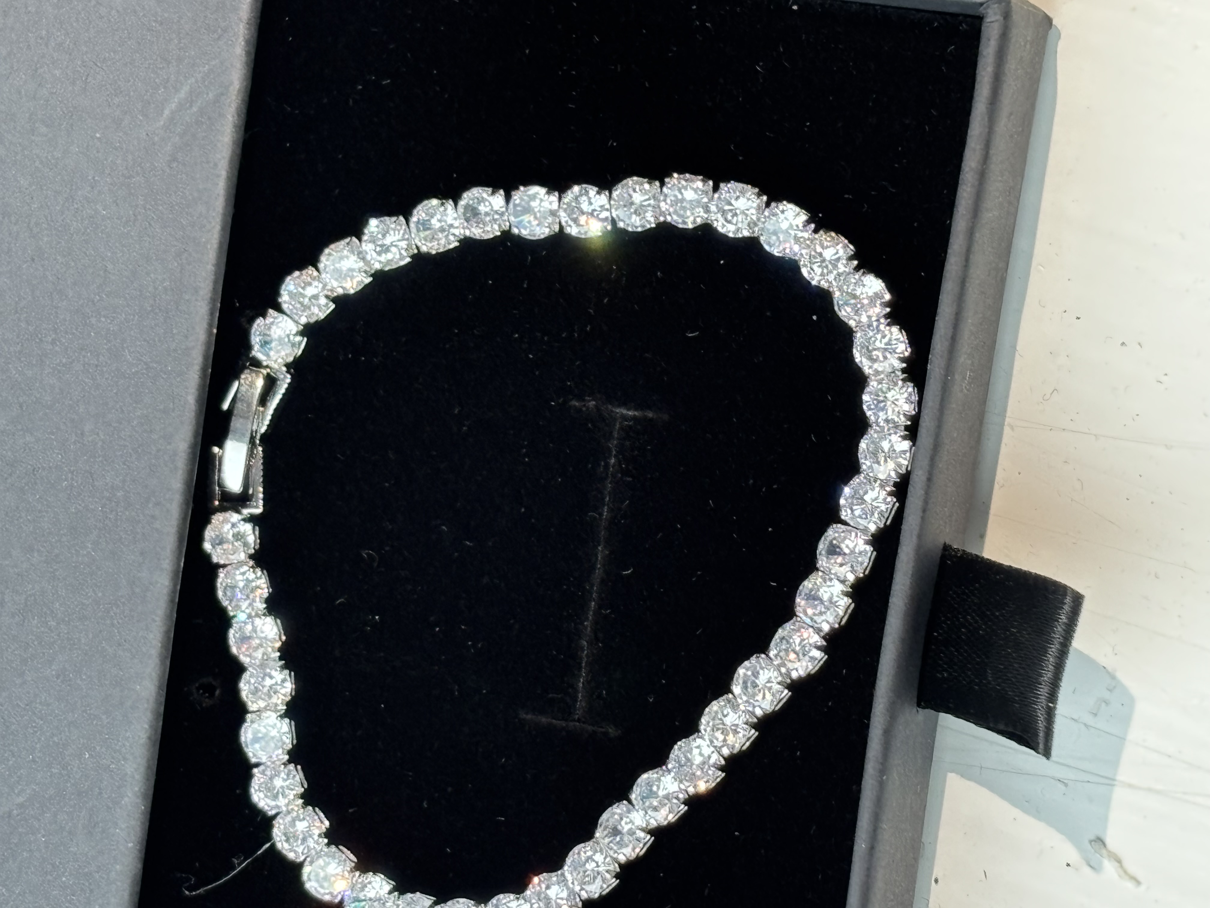 Sterling Silver Zircon Tennis Bracelet In Box